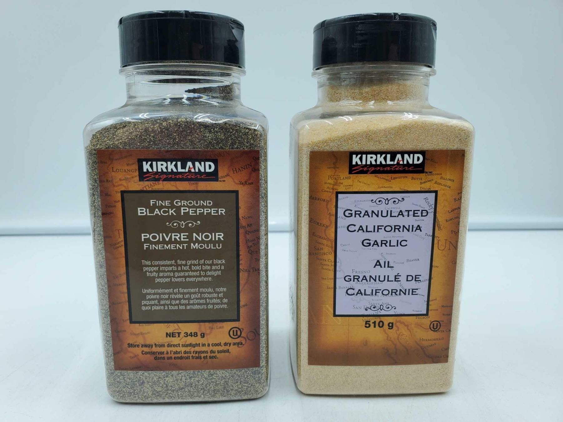 Kirkland Fine Ground Black Pepper (348g) Granulated California Garlic (510g)