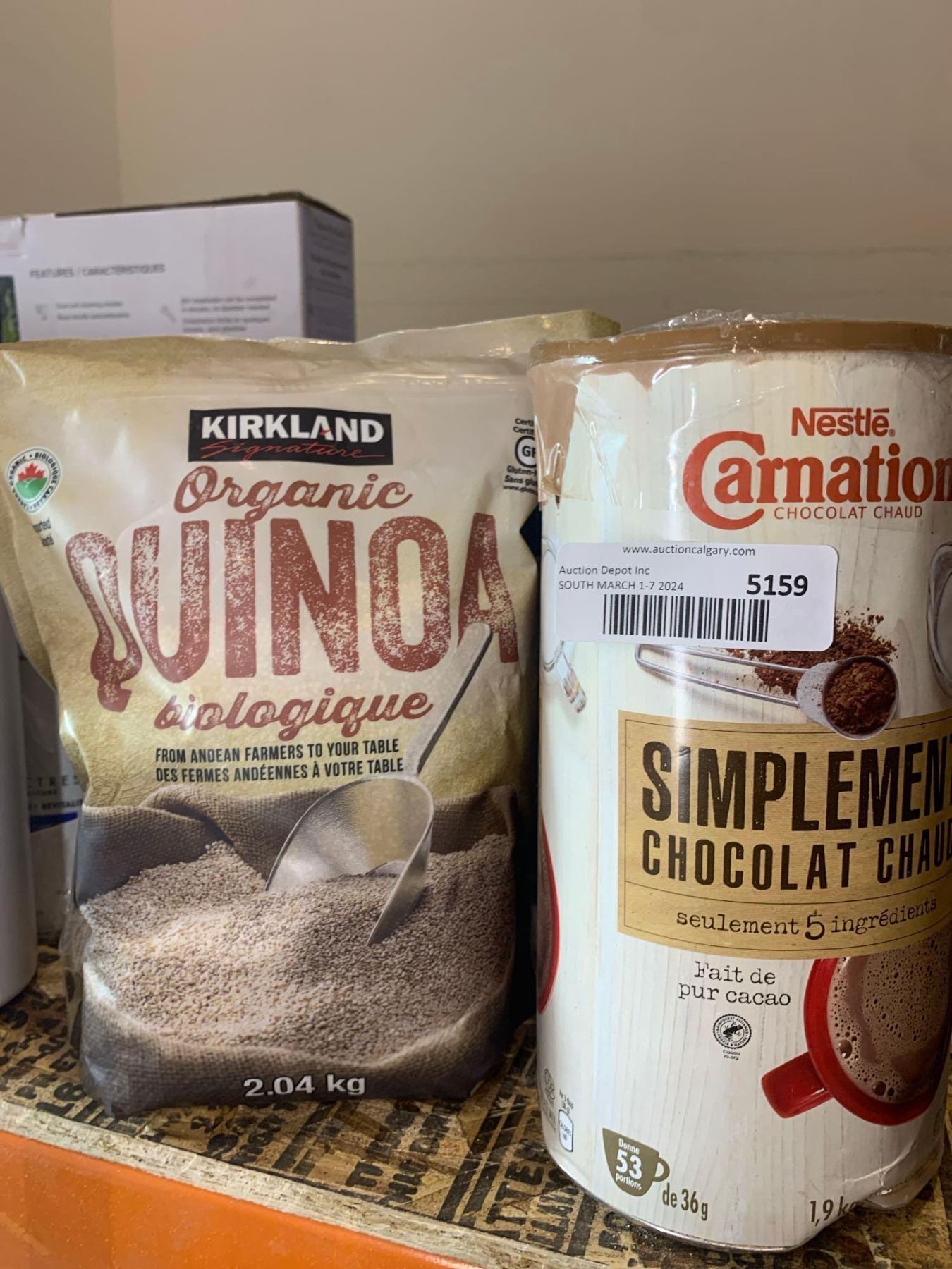 Kirkland organic quinoa 2.04kg and Nestle Carnations Hot Chocolate Powder 1.9kg