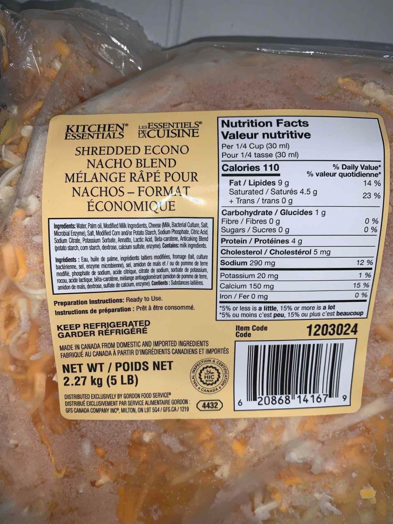 Kitchen Essentials Shredded Econo Nacho Blend Cheese 2.27Kg (5 Lbs)