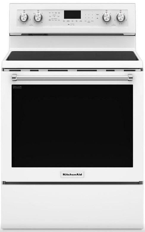 KitchenAid YKFEG500EWH Electric Range, 30 inch Exterior Width, Self Clean, Convection, 5 Burners, 6.