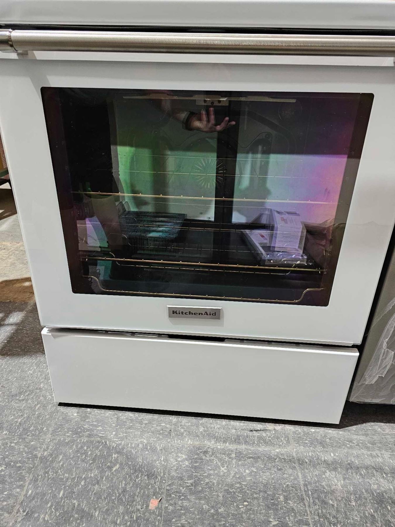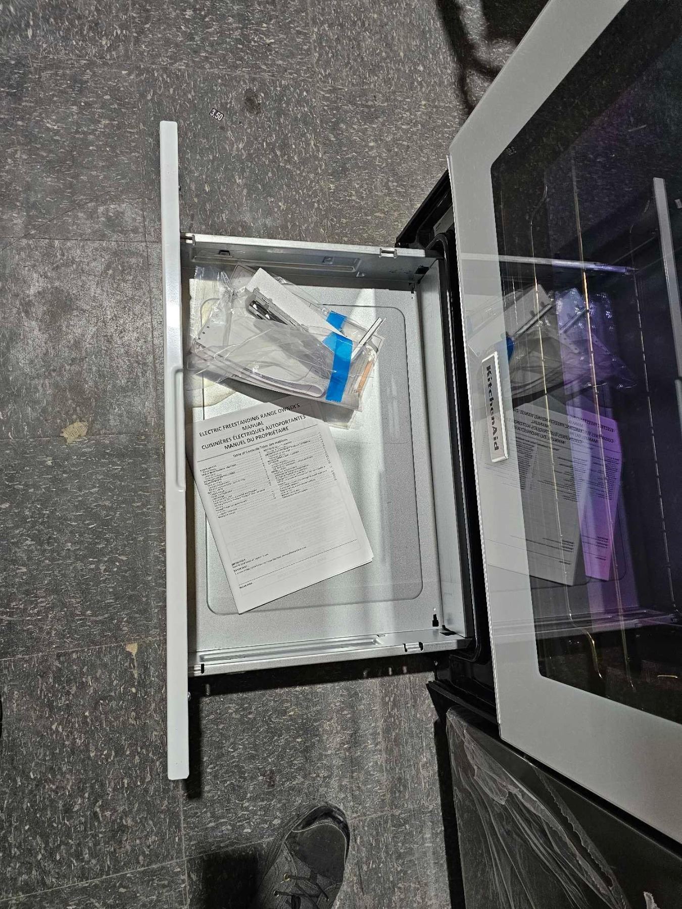 KitchenAid YKFEG500EWH Electric Range, 30 inch Exterior Width, Self Clean, Convection, 5 Burners, 6.4 cu. ft. Capacity, Storage Drawer, 1 Ovens, White colour True European Convection