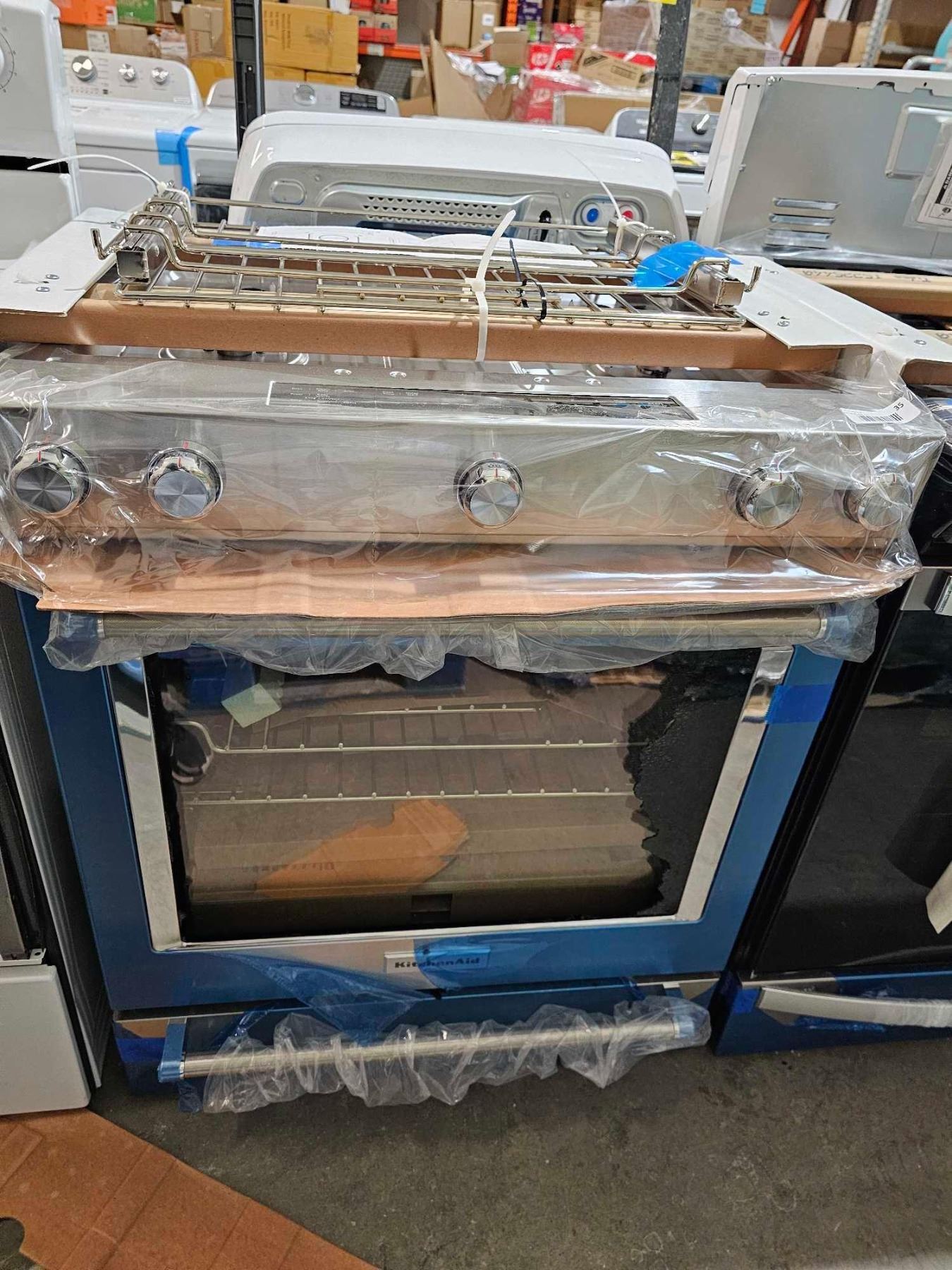 KitchenAid YKSDB900ESS Range, Dual Fuel, 30 inch Exterior Width, Self Clean, Convection, 5 Burners, 7.1 cu. ft. Capacity, Oven Drawer, 1 Ovens, Stainless Steel colour True European Convection, Steam Rack **BROKEN DOOR SOLD AS IS - Please Inspect before you buy **