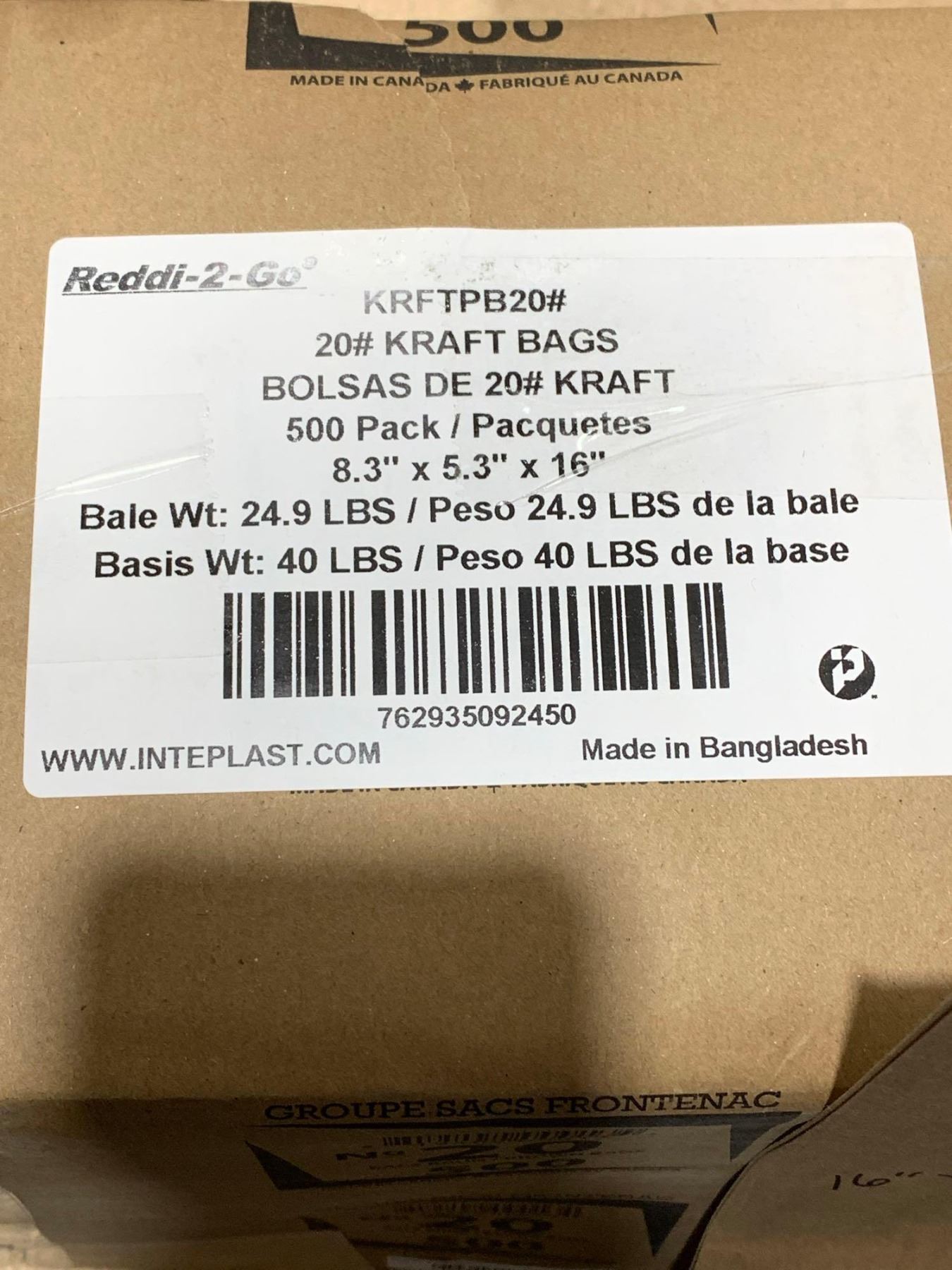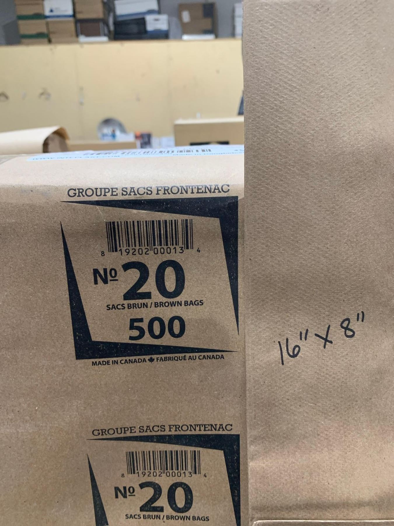 Kraft #20 Paper Bags 500pack 8.3"x5.3"x16"