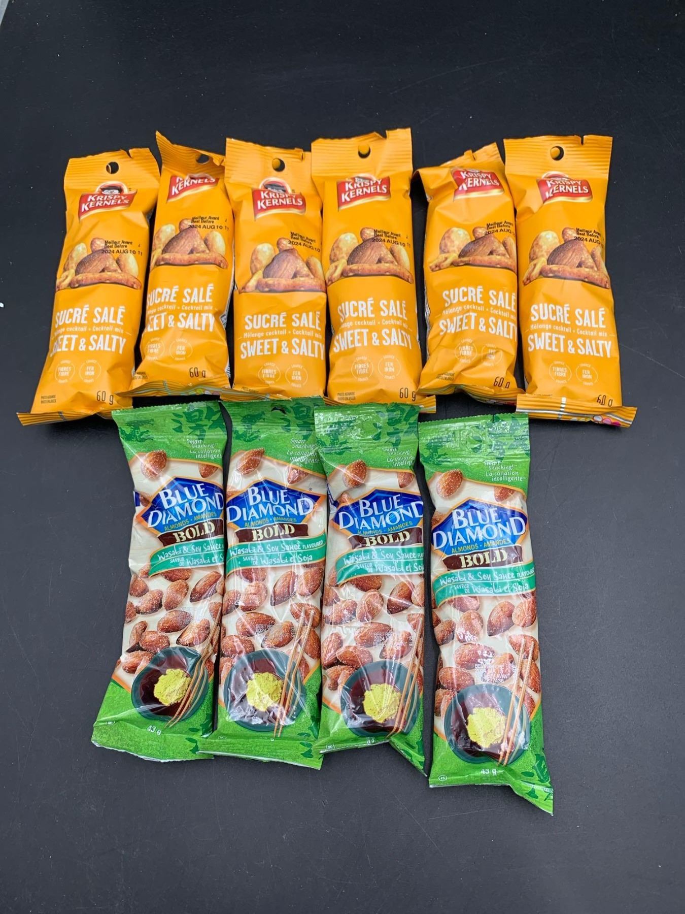 Krispy Kernesl Sweet & Salty Mix (60g x 6), Blue Diamond Bold Almonds-Wasabit & Soy Sauce (4 x 43g)