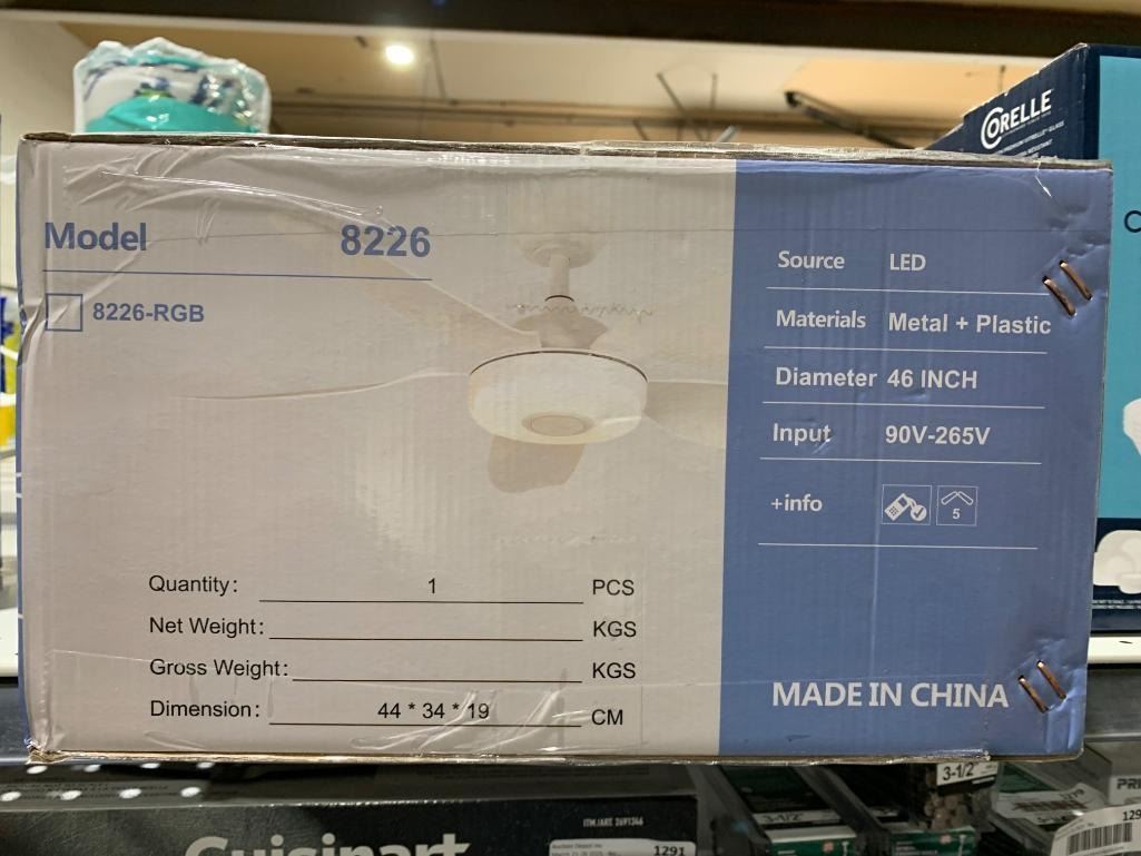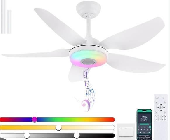Kvifon 8226-RGB Ceiling Fan With RGB Lights & Bluetooth Speaker , 46-Inch