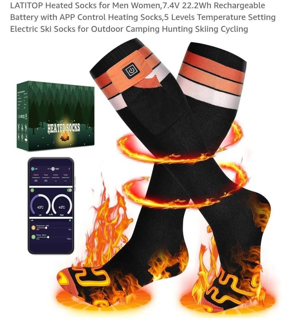 LATITOP Heated Socks with Rechargeable Battery and APP Control