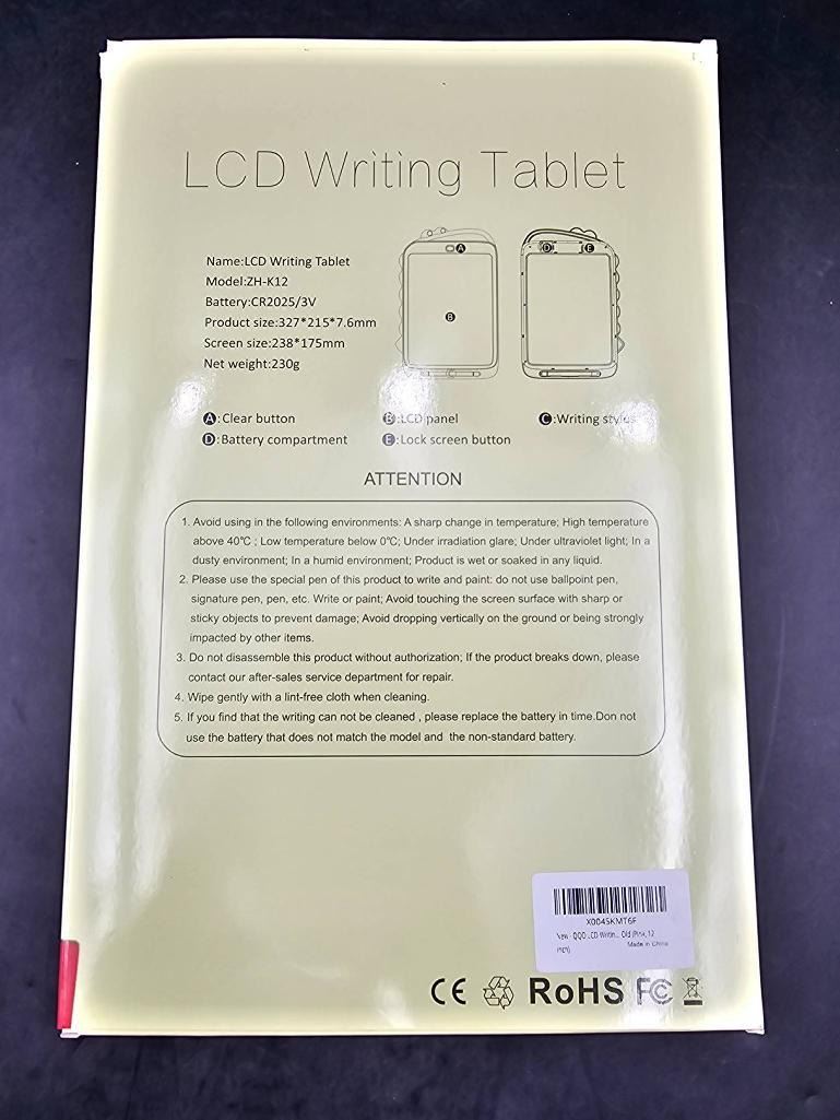 LCD Writing Tablet 12-inch for Ages 3+ with Pink Frame
