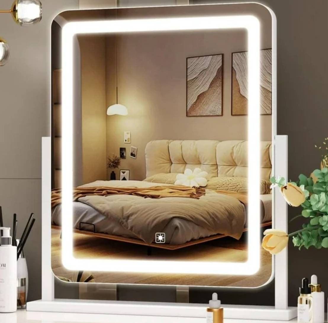 LED Lighted Makeup Vanity Mirror With 360-Degree Rotation – White