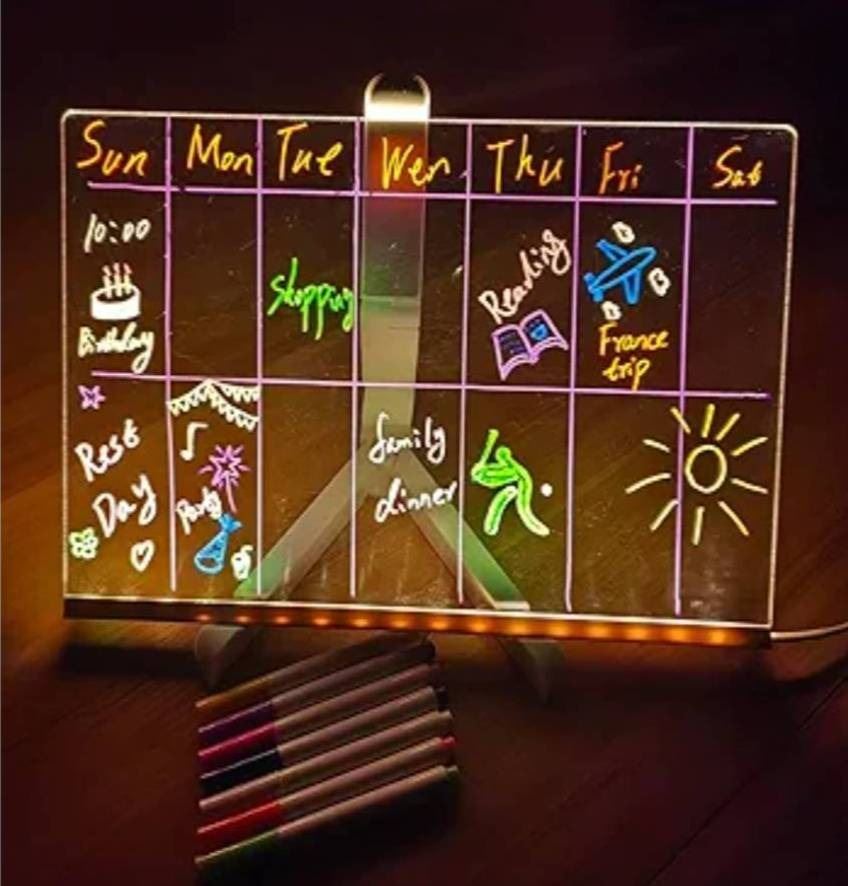 LED Note Board, 11.8 x 7.9 inch Acrylic Message Board with Adjustable Stand and 7 Pens