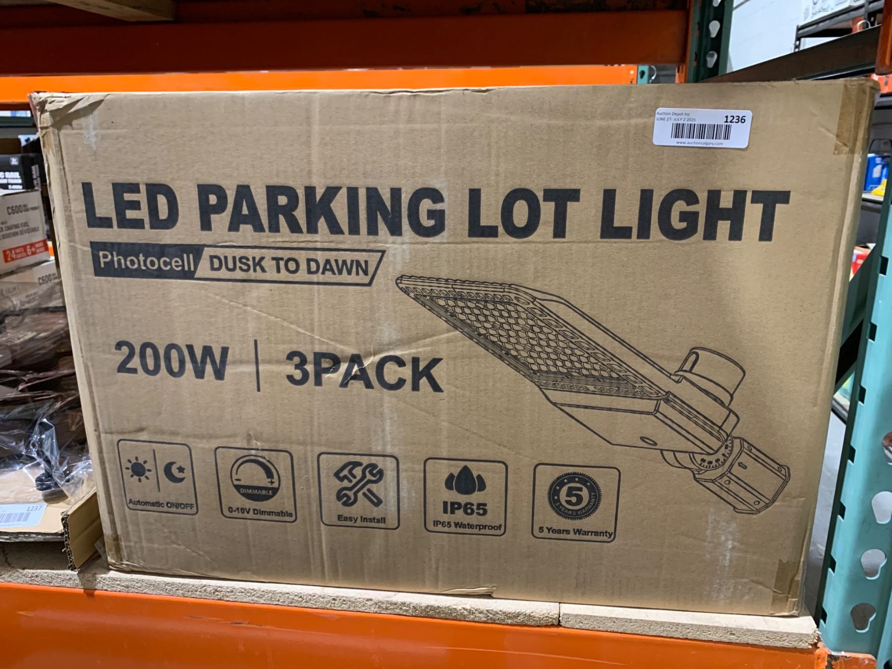 LED Parking Lot Light, Photocell Dusk to Dawn, 200W, 3-Pack