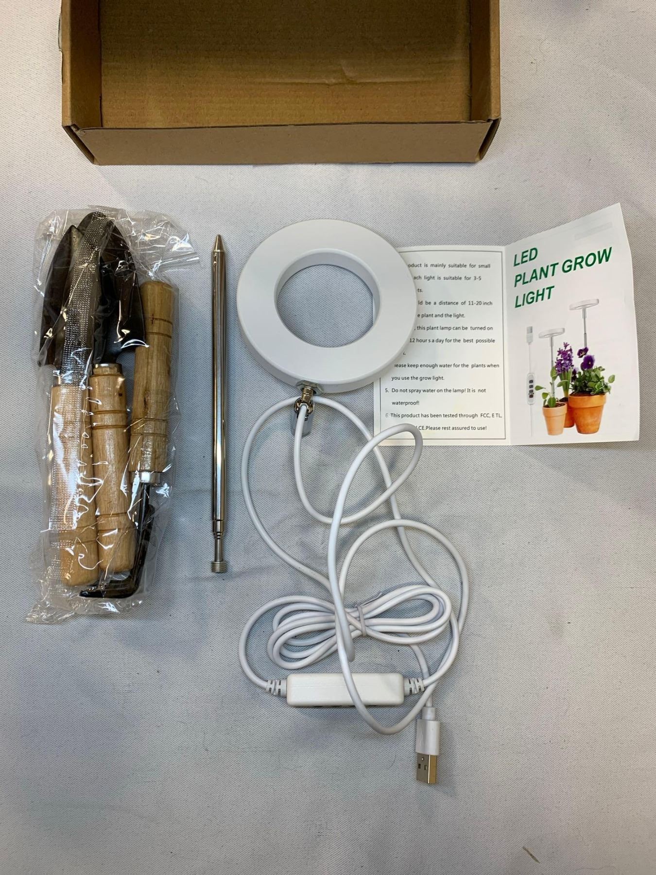 LED plant grow light with handheld gardening tools