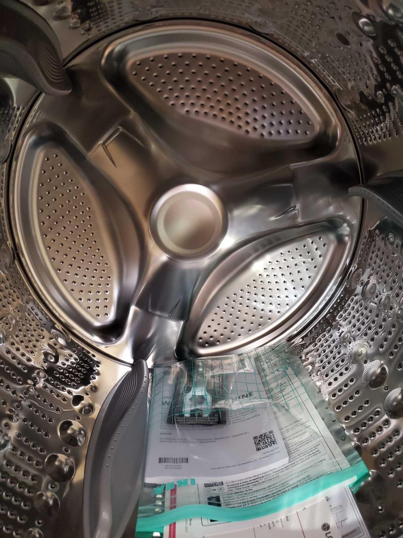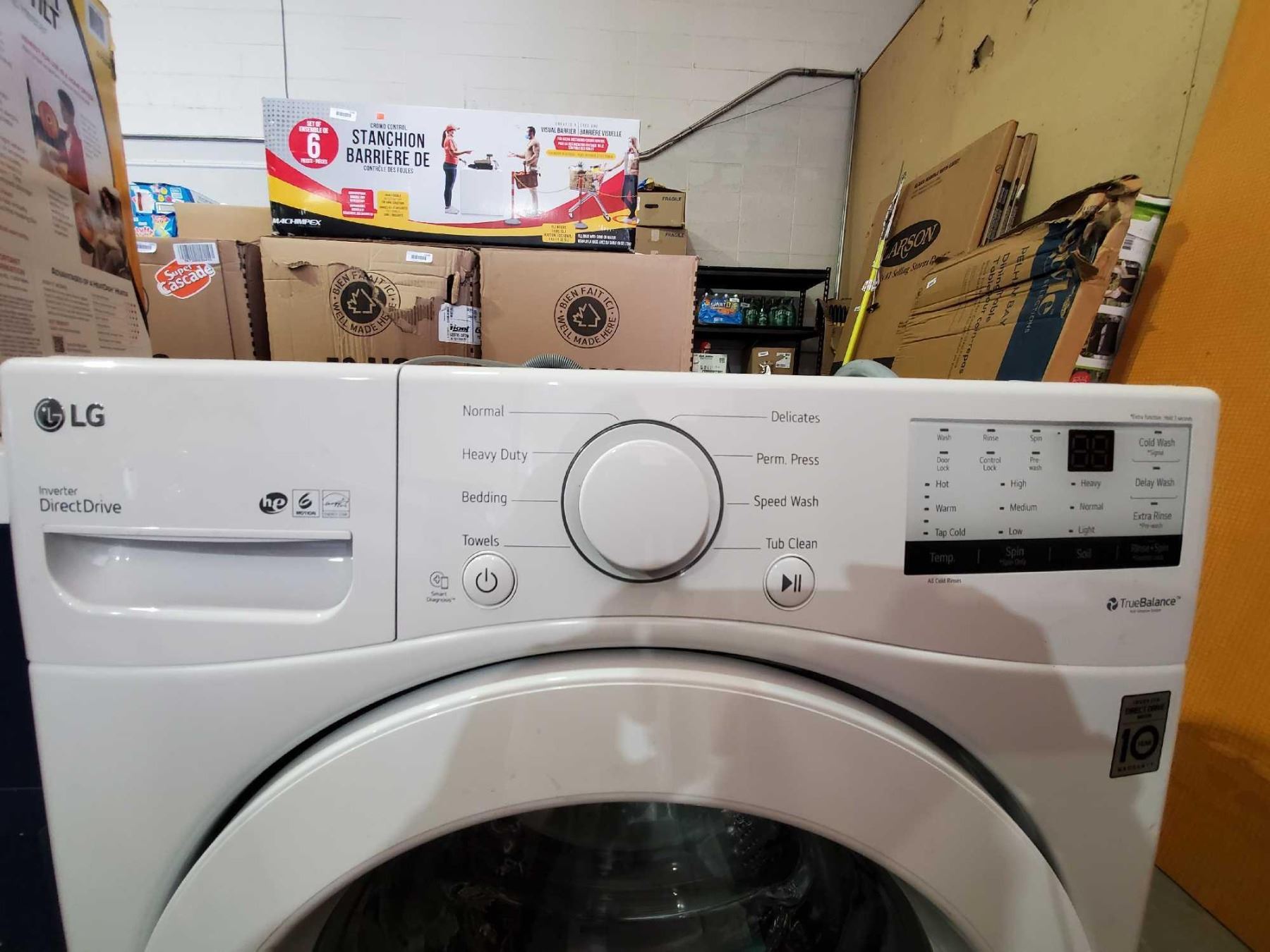 LG Direct Drive true balance front load washing machine - floor model display with manuals