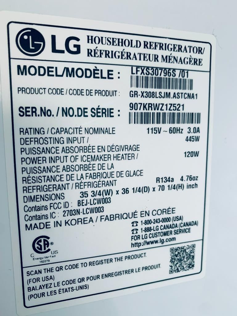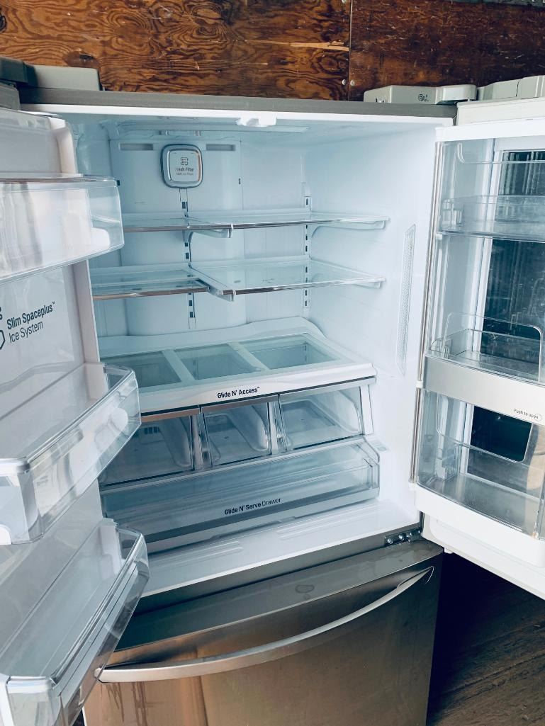 LG Model LFXS30796s Stainless Steel 36 inch 3 door fridge with ice water dispenser & window - UNTESTED SOLD AS IS