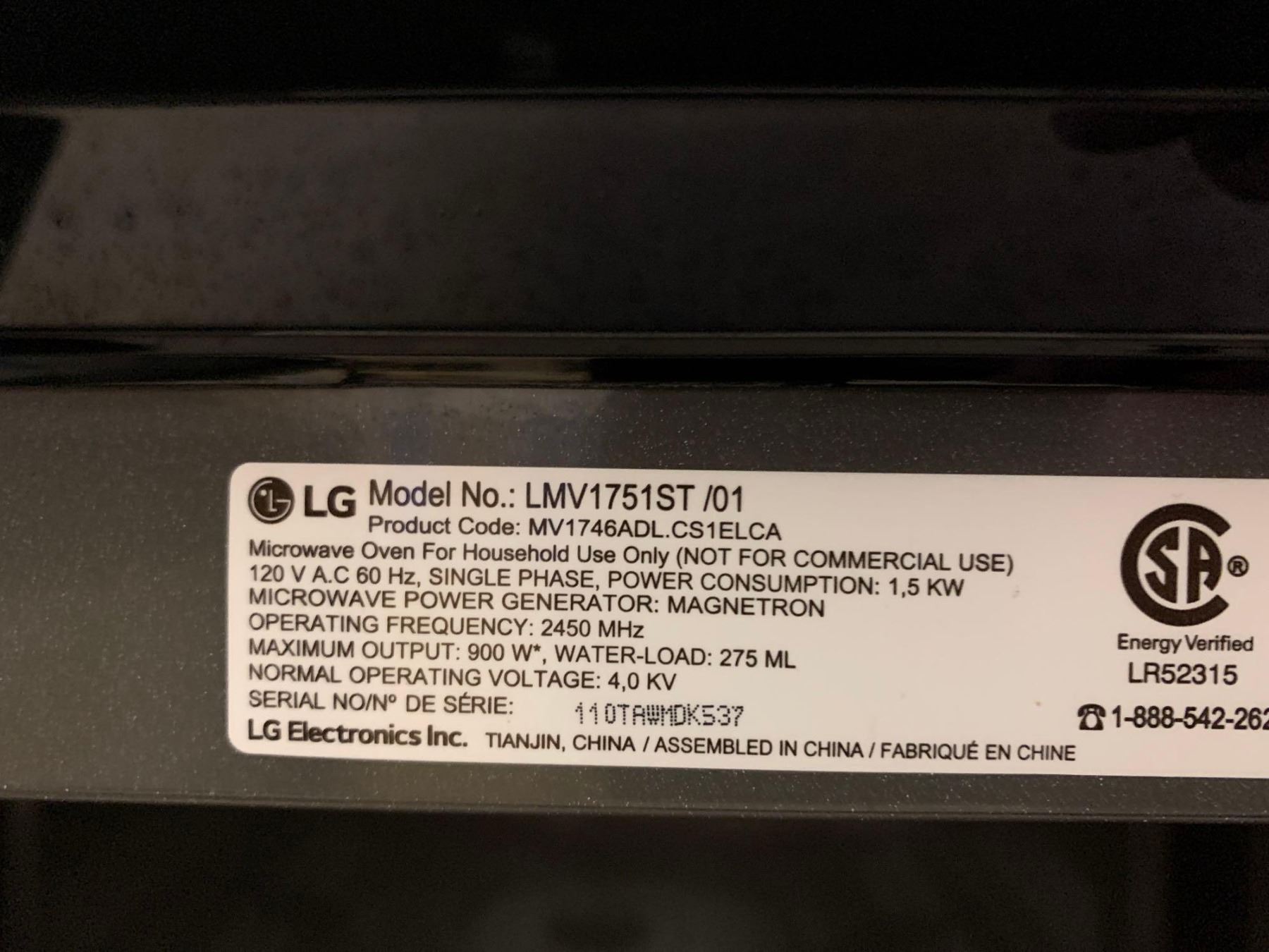 LG Stainless Steel Above Range Microwave 1.7 Cu Ft Model LMV1751ST