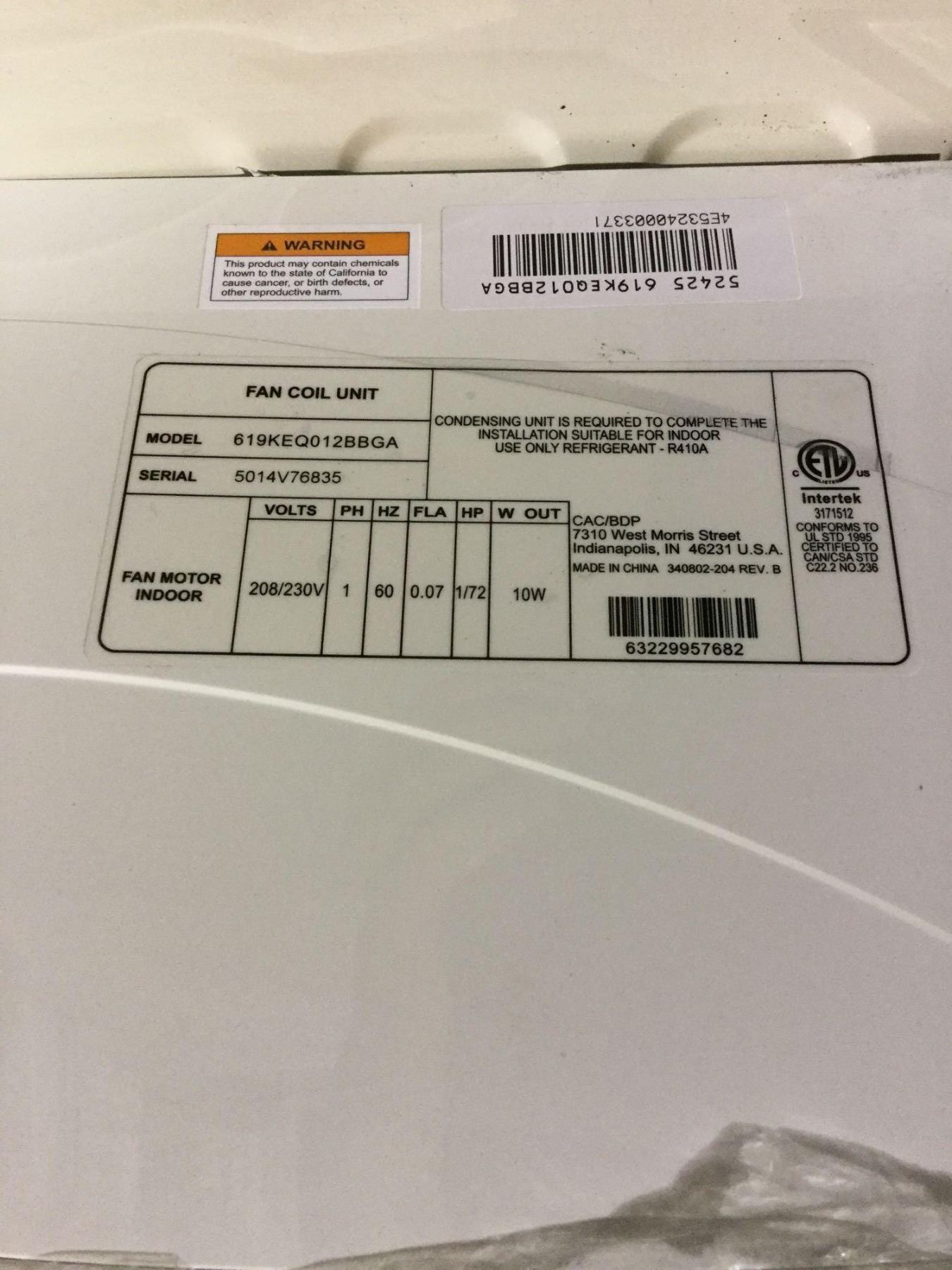 LOT OF 2 Split Type Air Conditioner Model: 619KEQ012BBGA and 538KEQ030RFGA