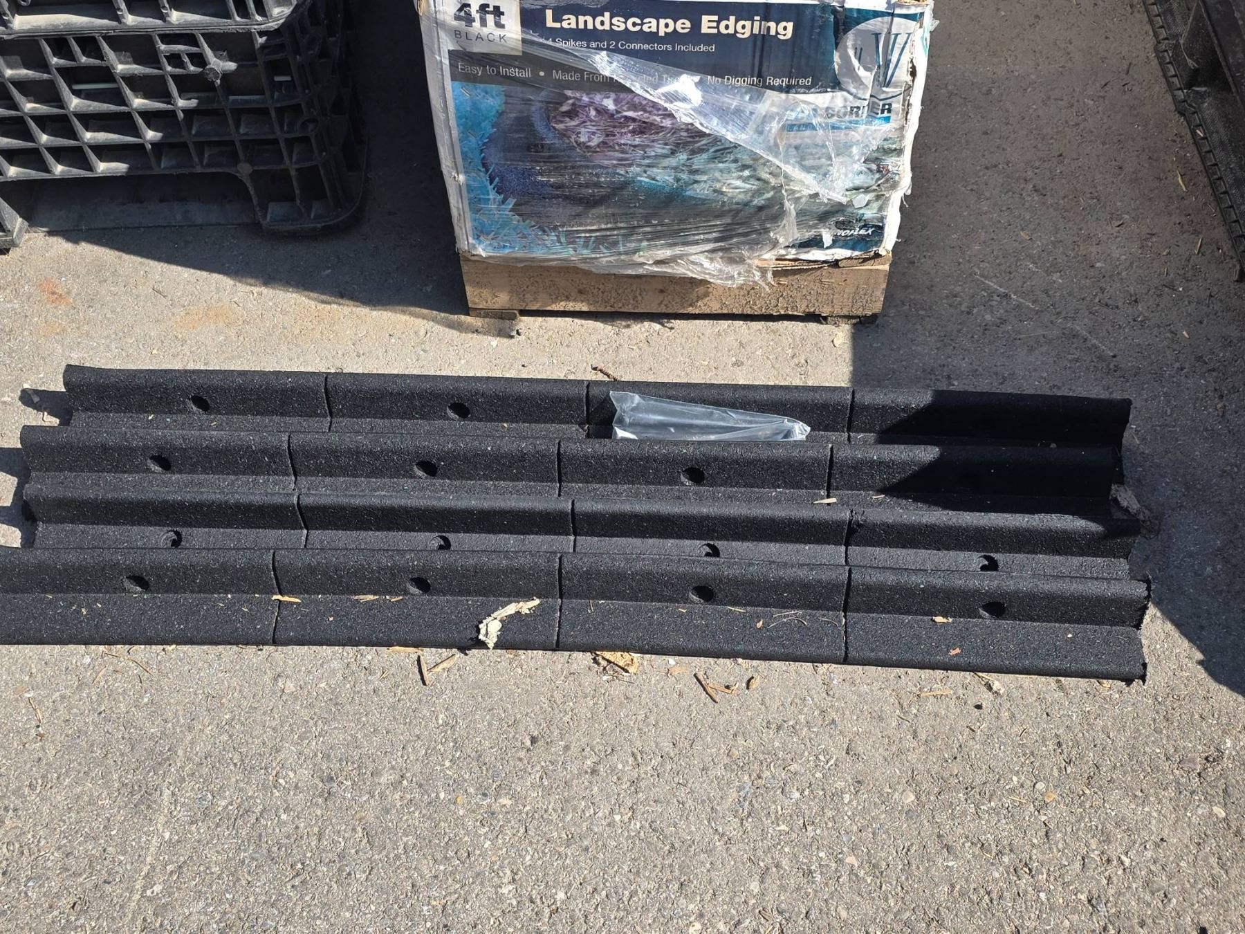 LOT OF 4 – 4ft Black Rubber Landscape Edging with Spikes and Connectors