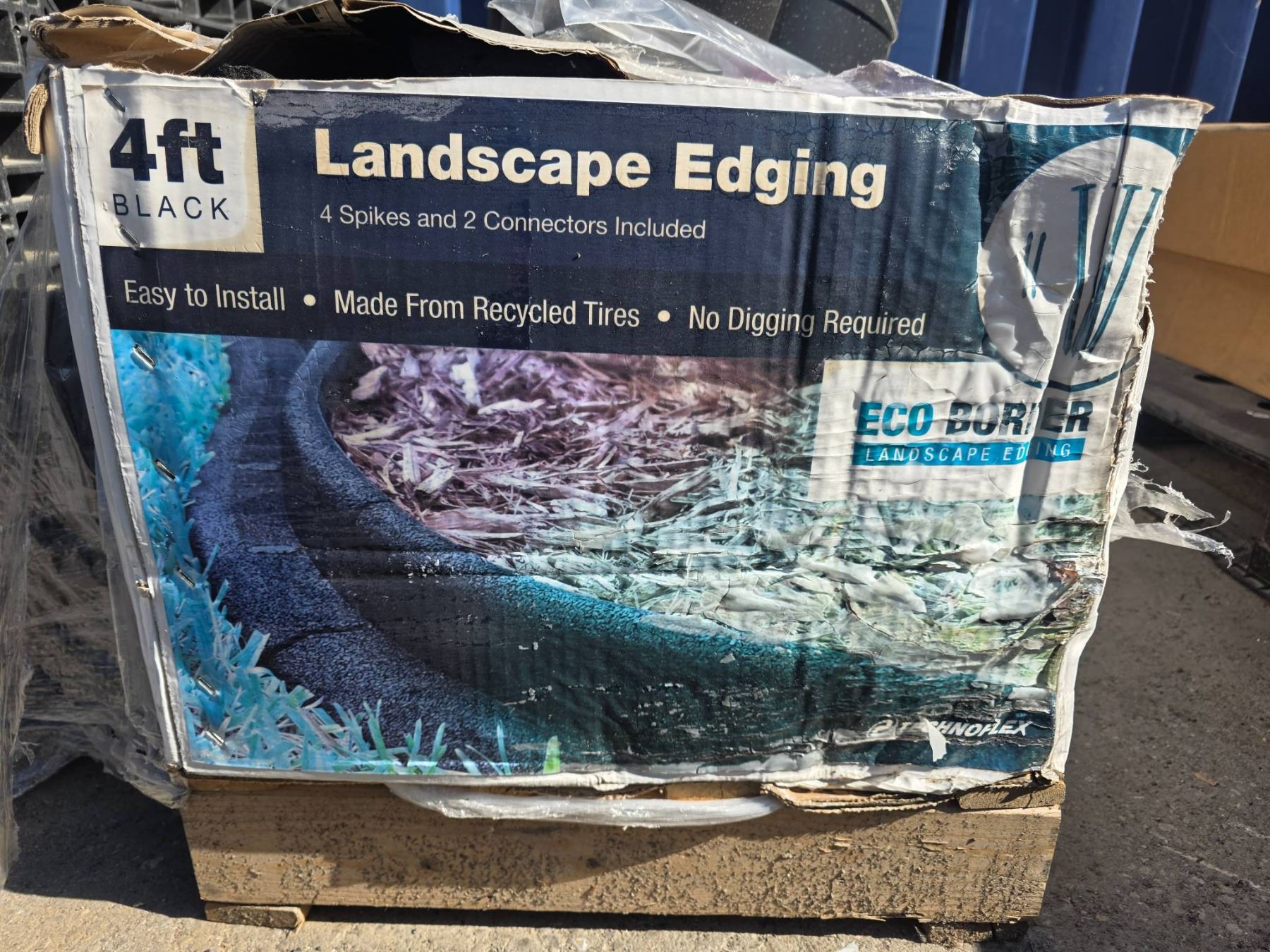 LOT OF 4 – 4ft Black Rubber Landscape Edging with Spikes and Connectors