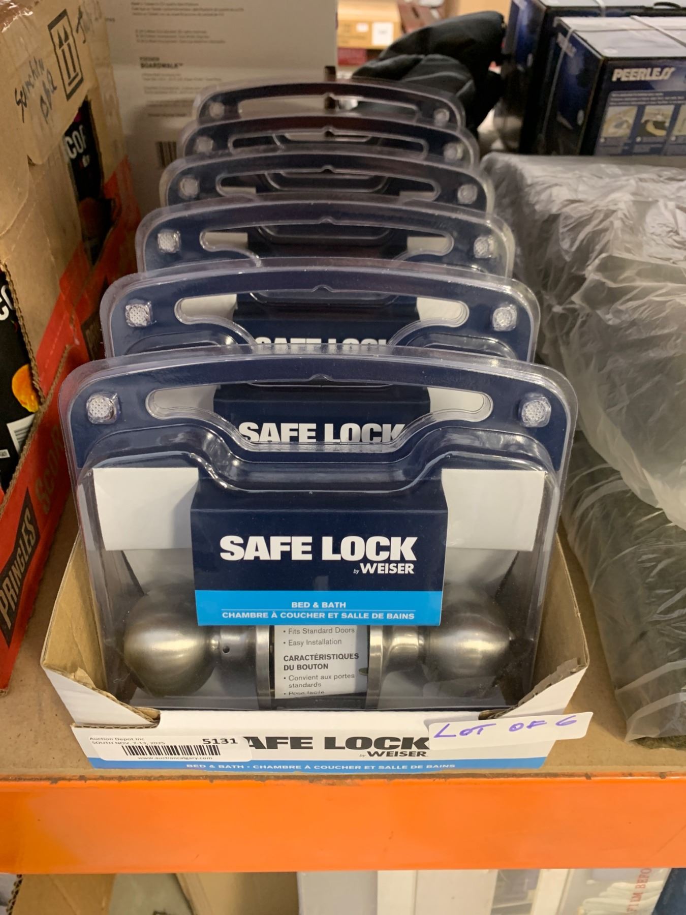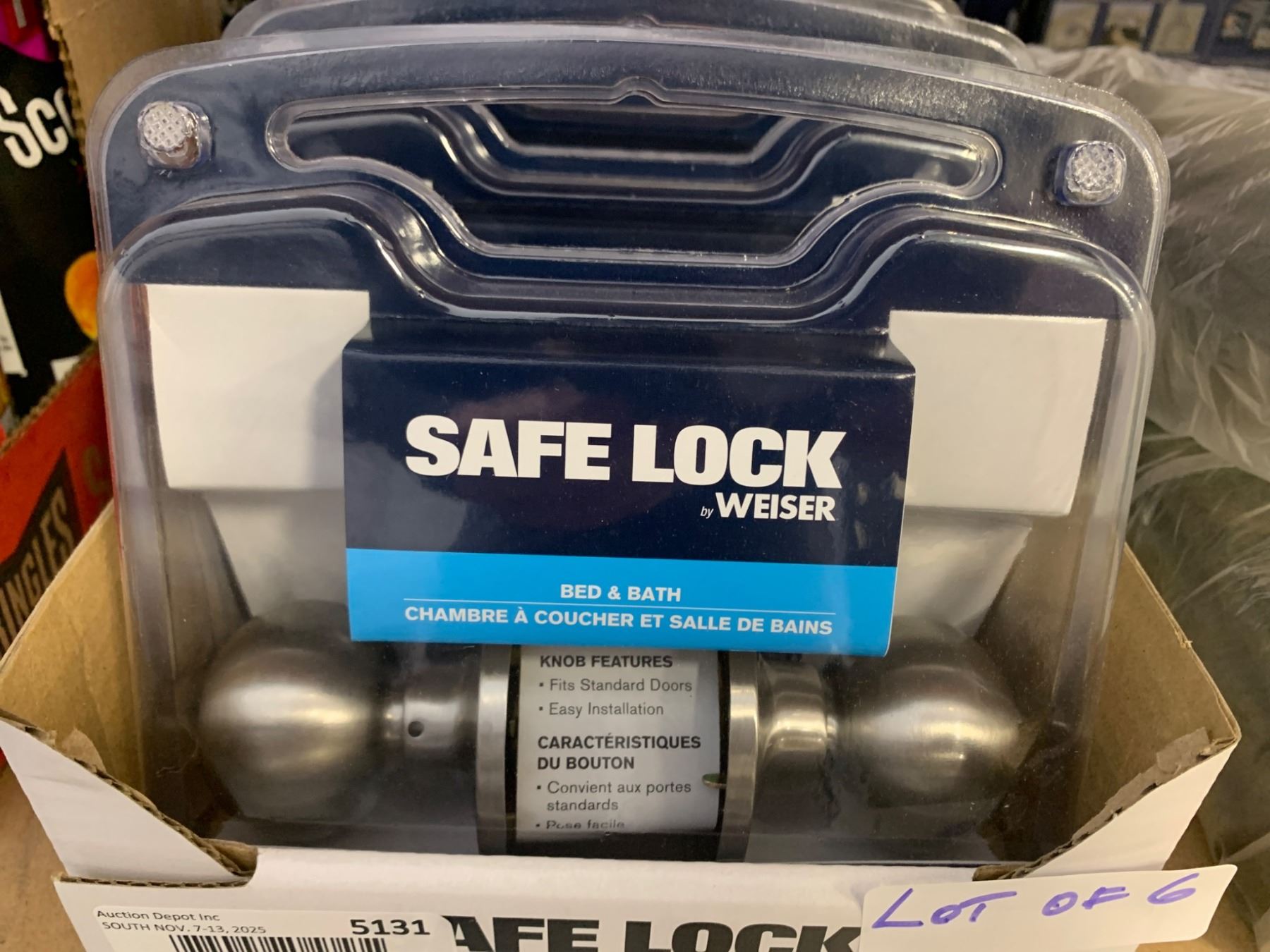 LOT OF 6 Weiser Safe Lock Bed and Bath Door Knobs Silver