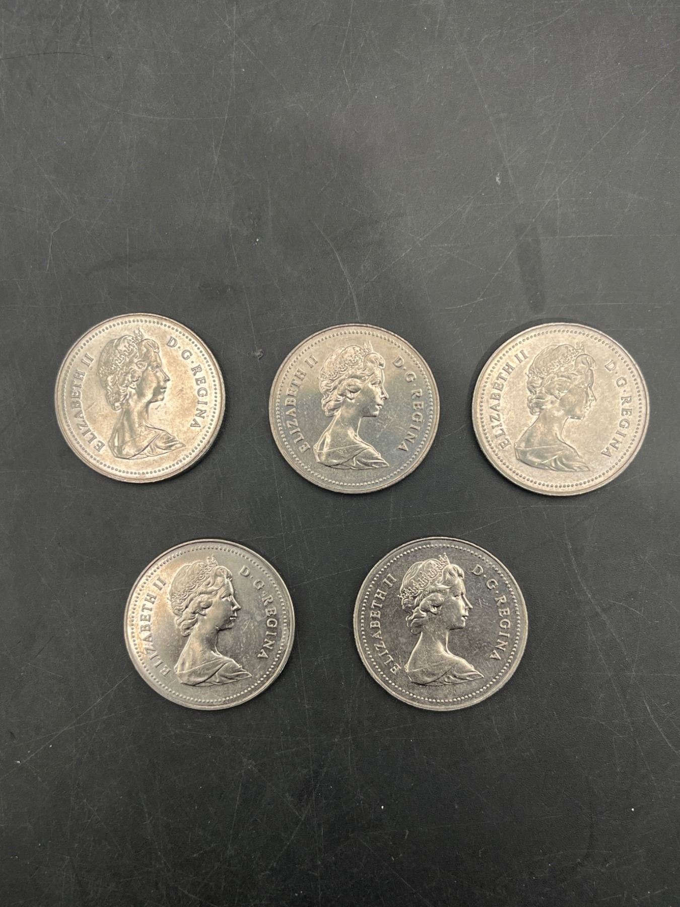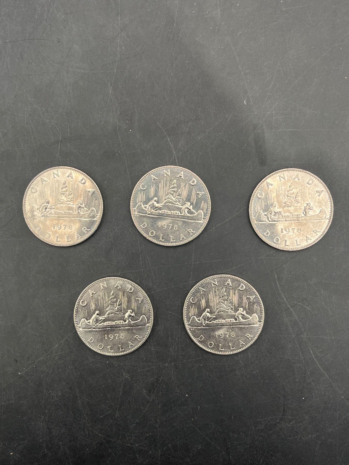 LOT of 5 Canadian 1 Dollar Coins – various years