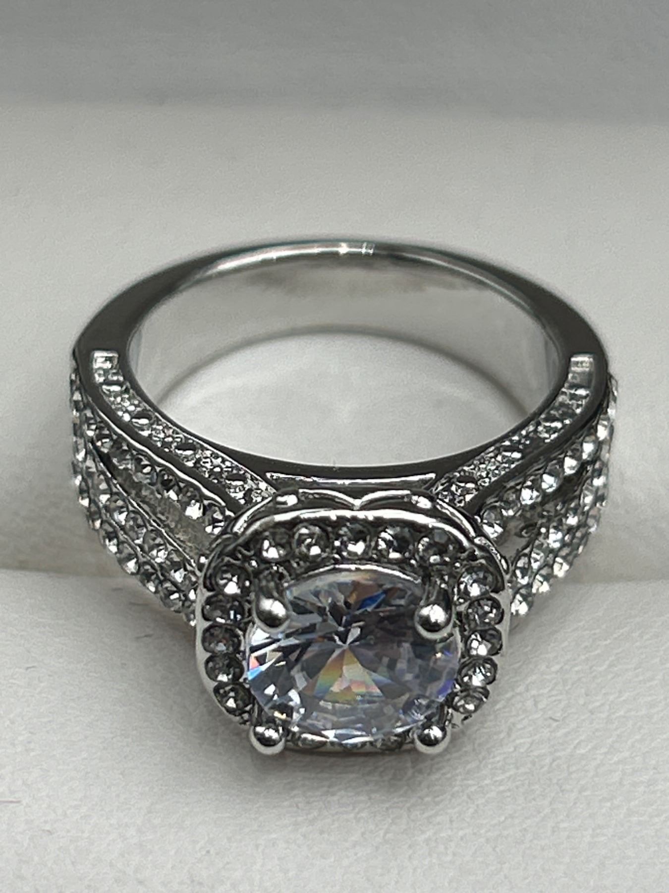 Ladies 1.1 Carat Cusion Cut .925 Silver Shank Style Ring