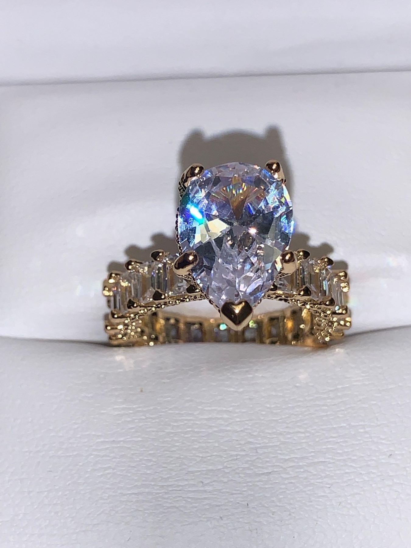 Ladies 1.50 Carat Pear Cut Solitaire Engagement Ring with Bezel baquette Stone set Band size 7