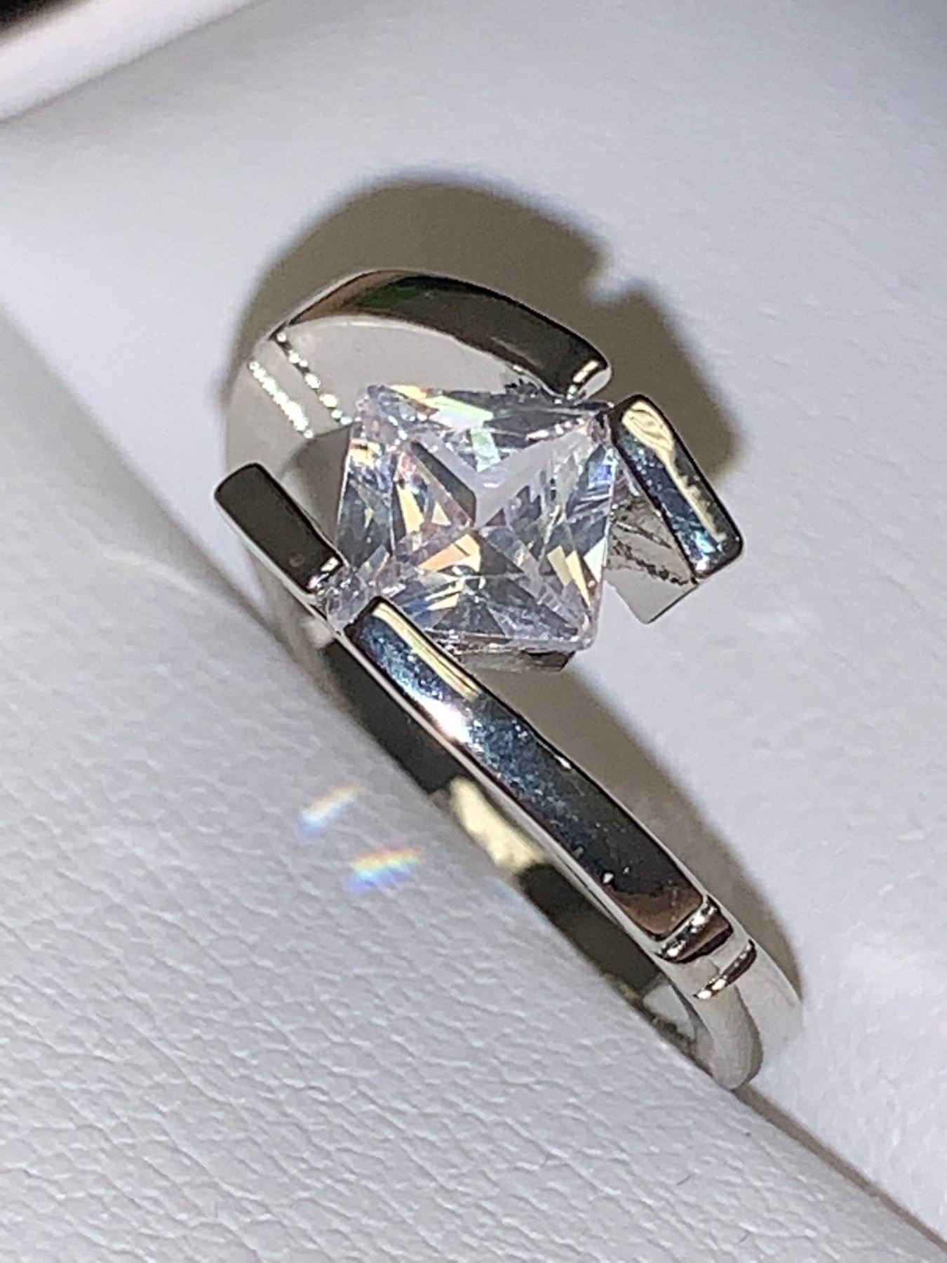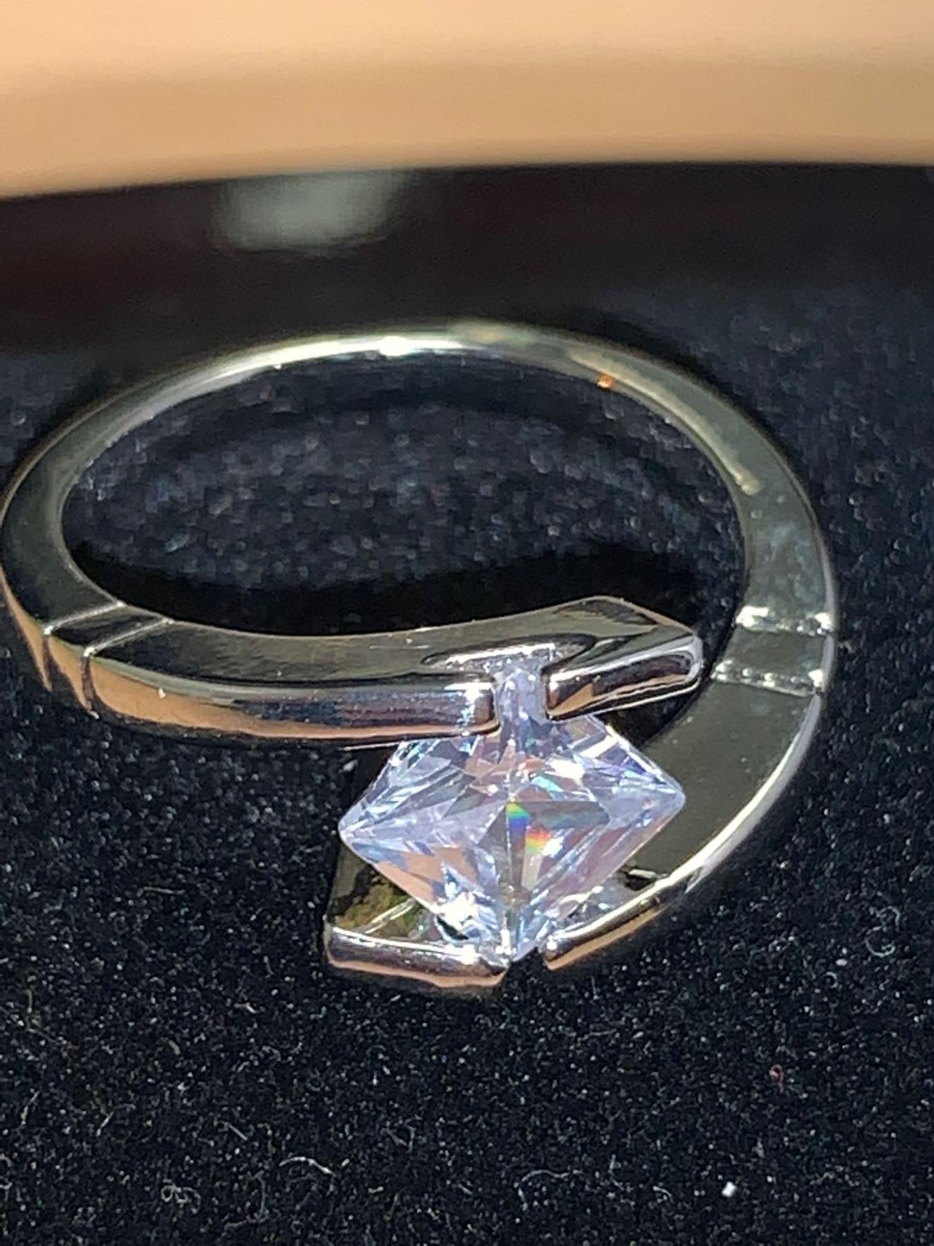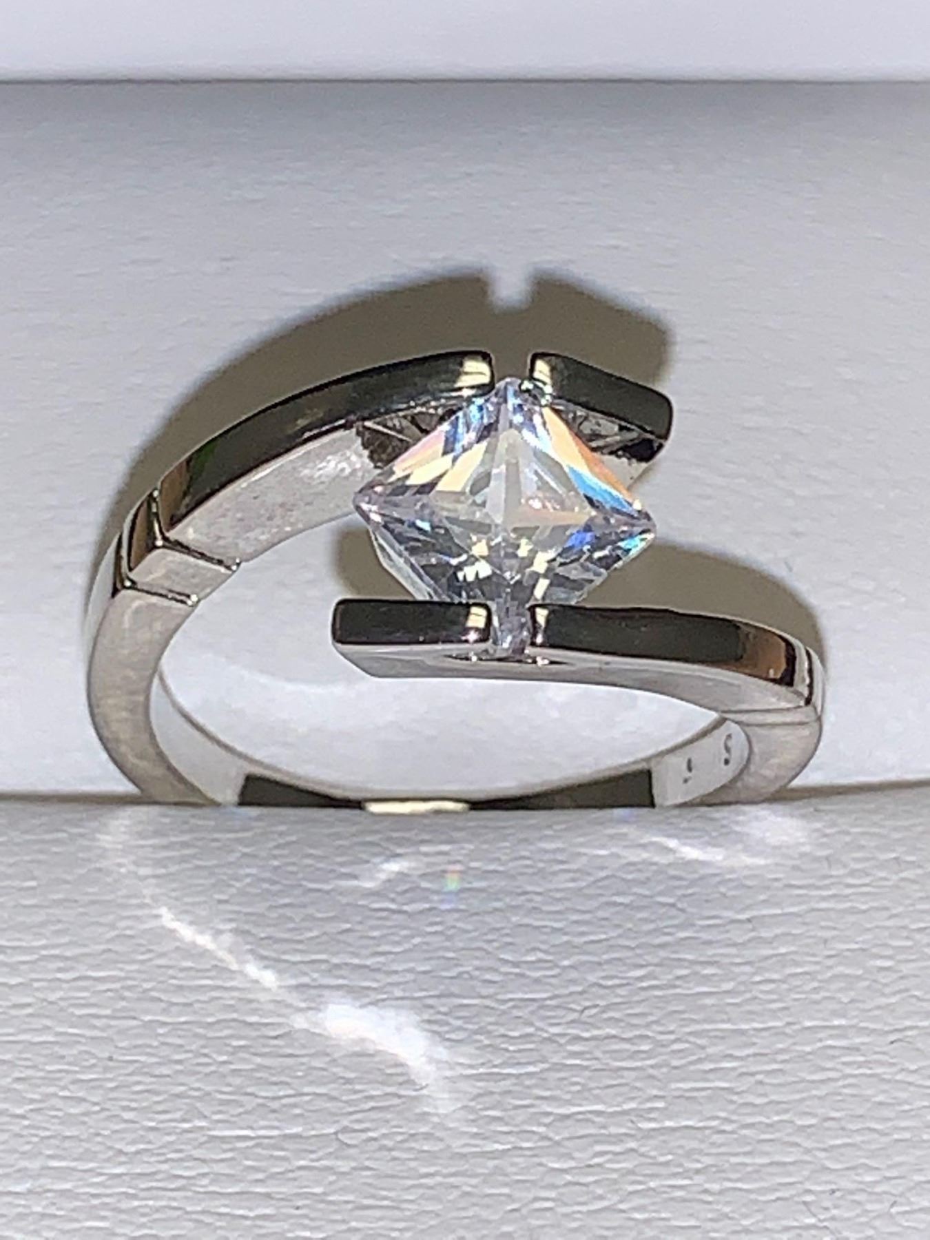 Ladies .80 carat Floating Princess Cut Solitaire off set ring size 7