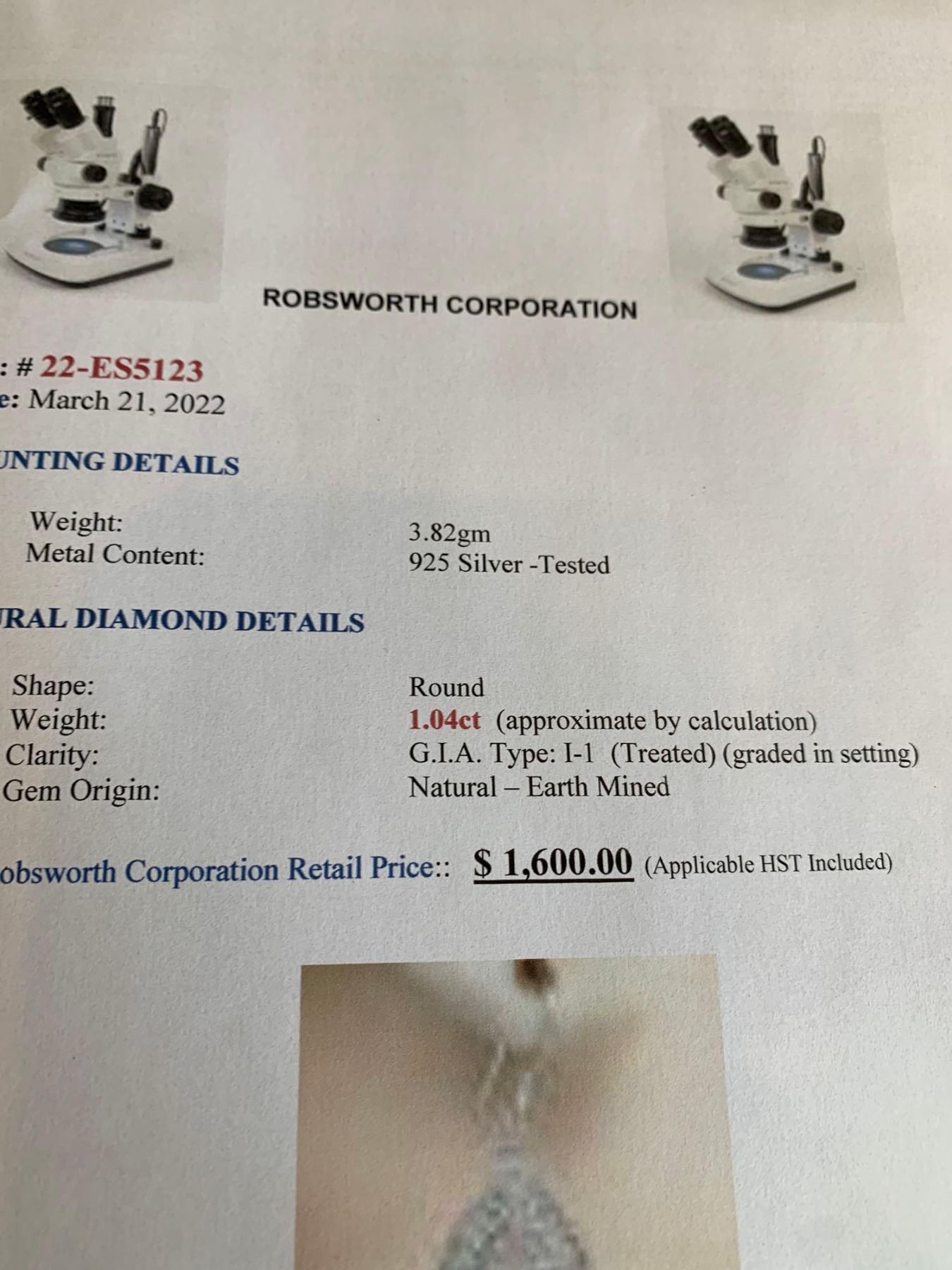 Ladies .925 Silver Diamond 1.06 Carat Tear Drop Style Set of dangle earrings with Appraisal Certificate $1600.00