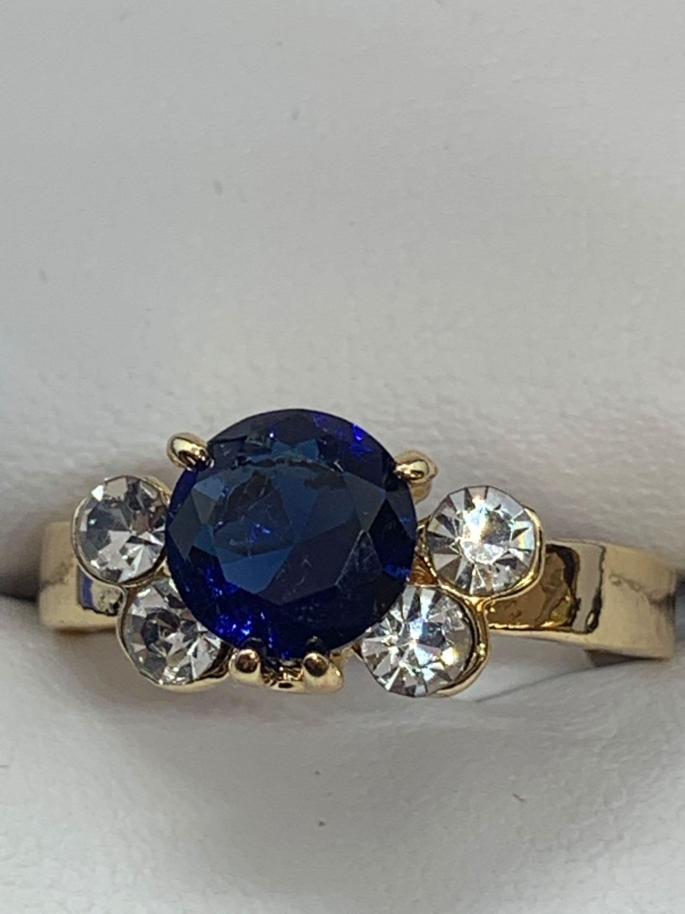 Ladies Blue Topaz Style Round Cut Gemstone Ring-size 7.5