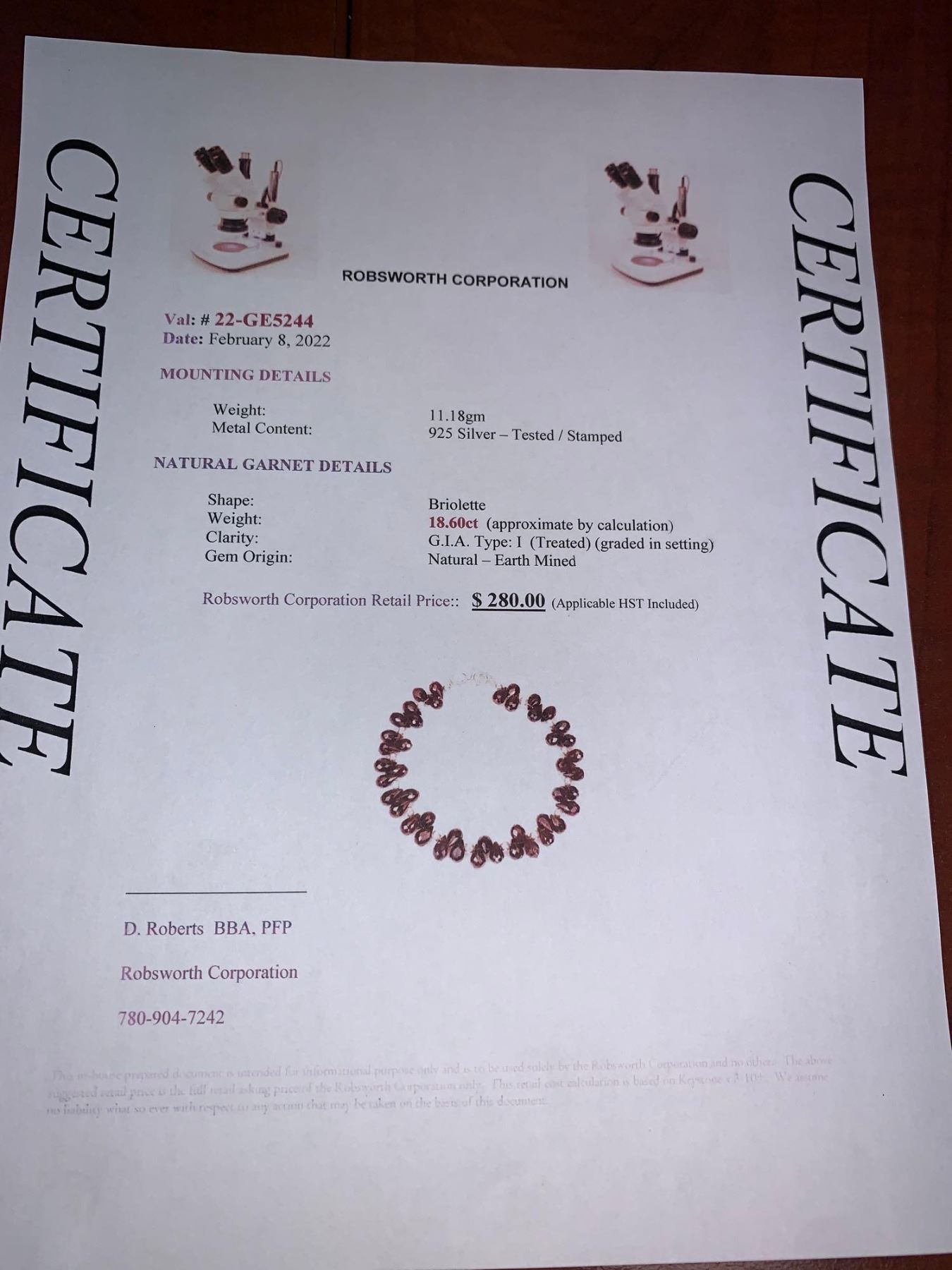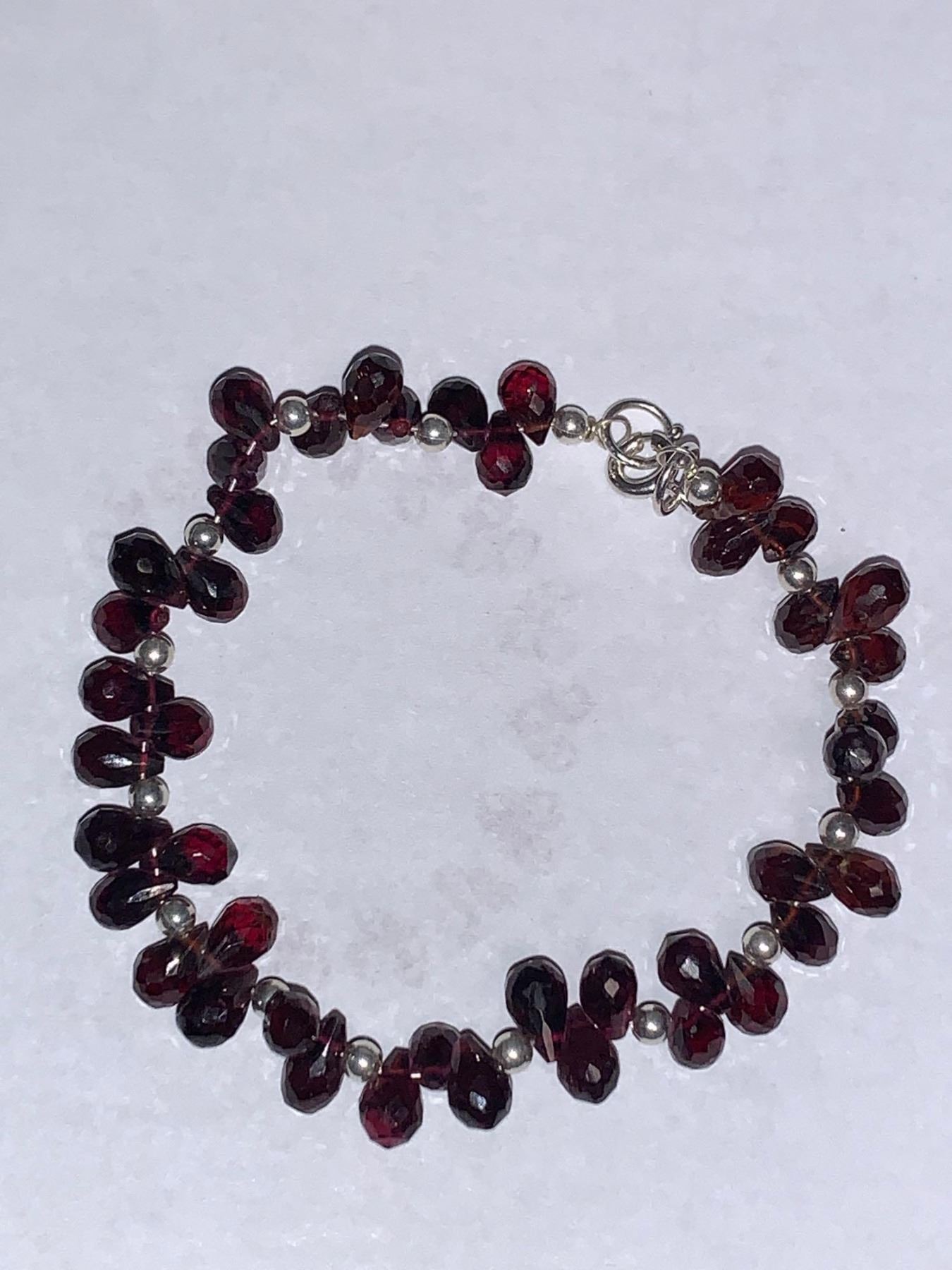 Ladies Garnet 18.60 carat on .925 Silver Briolette Cut Stones Bracelet - Certificate Value $280.00