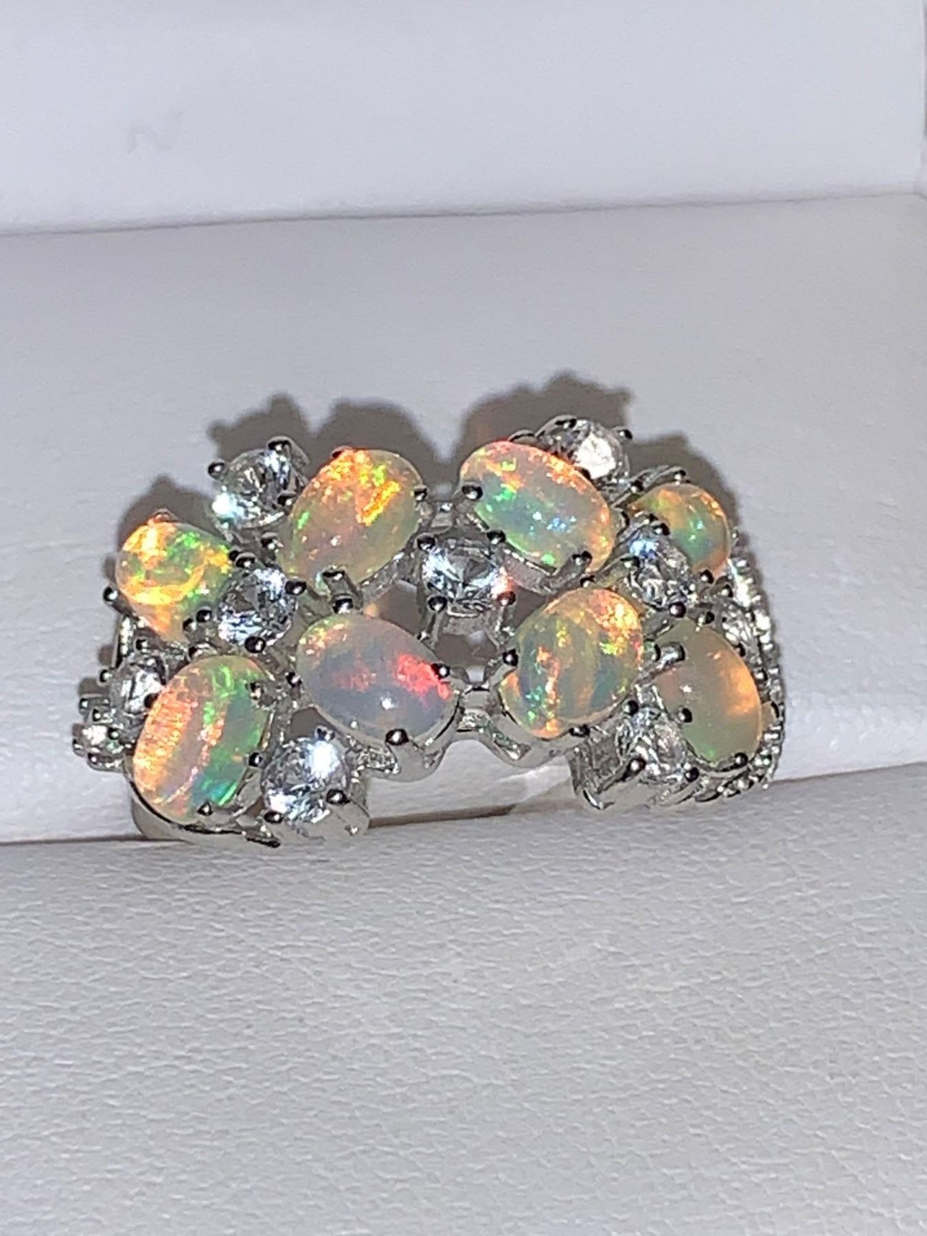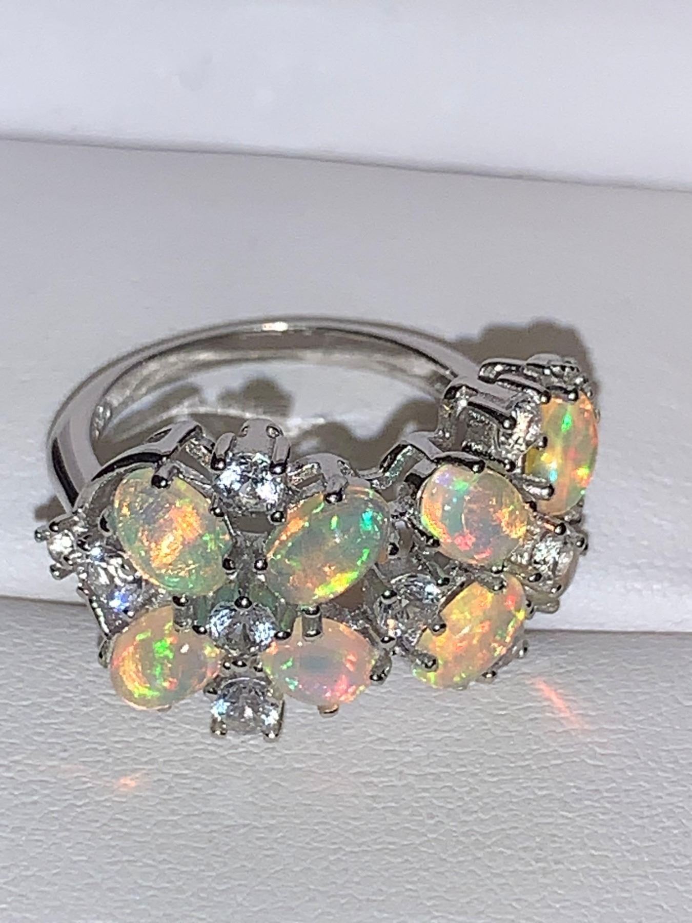 Ladies Natural Fire Opal Multi Stone 4.10 Carat Cluster .925 Silver Ring with Appraisal Certificate Value $650.00