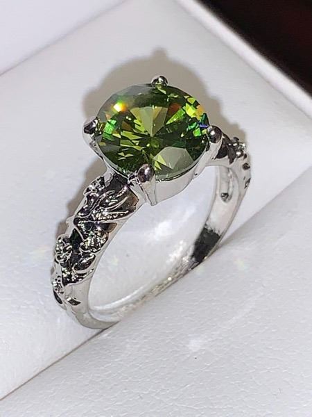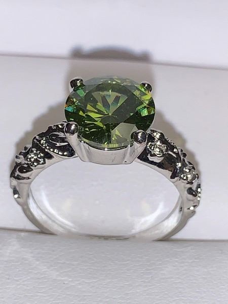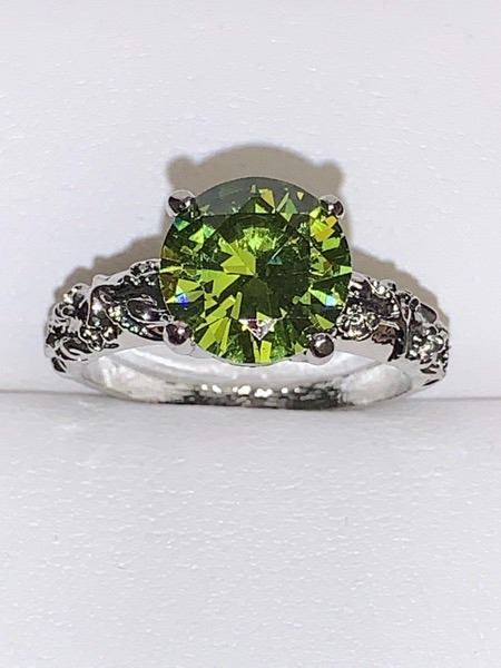 Ladies Peridot BU Cut Solitaire Stone Dress Ring size 7