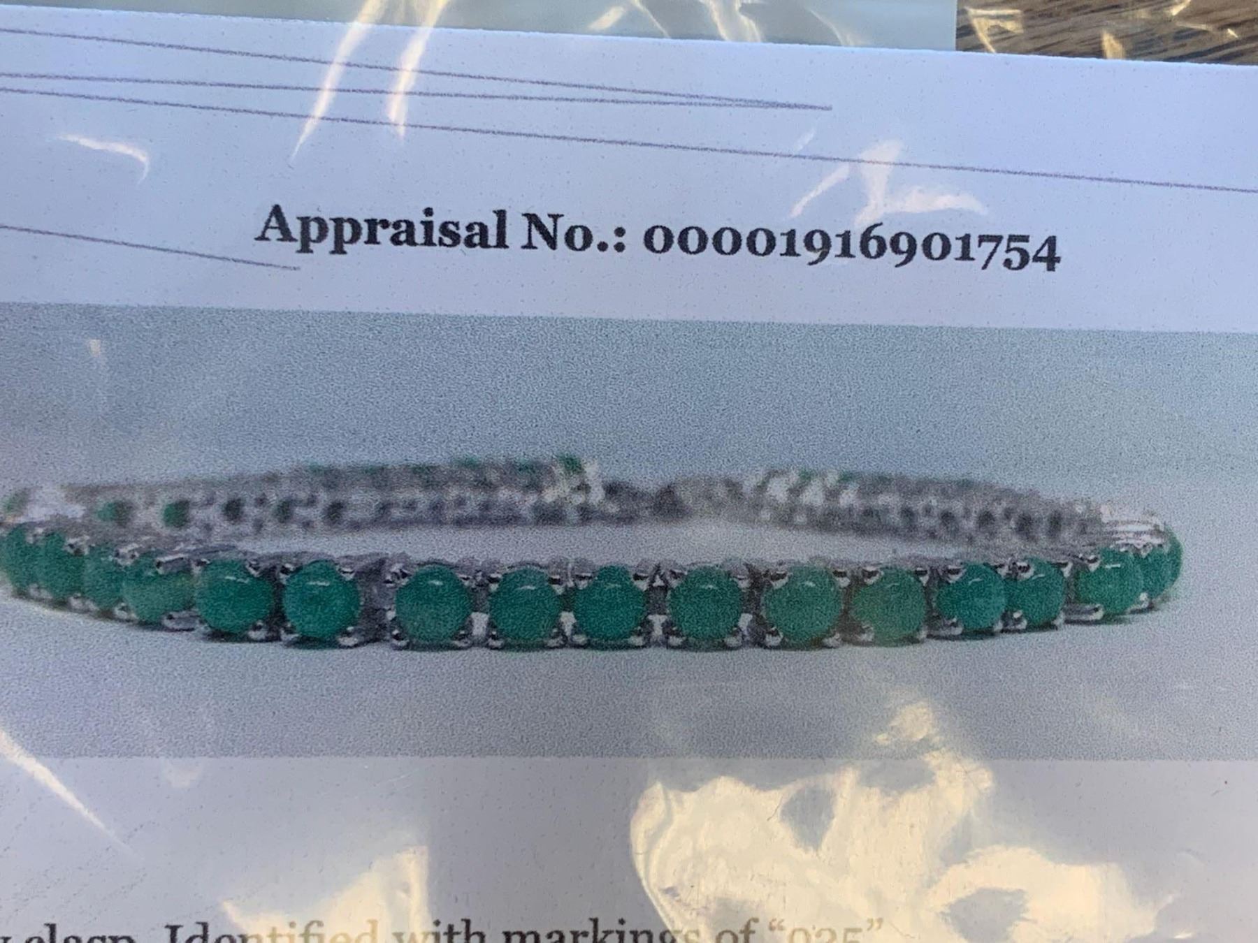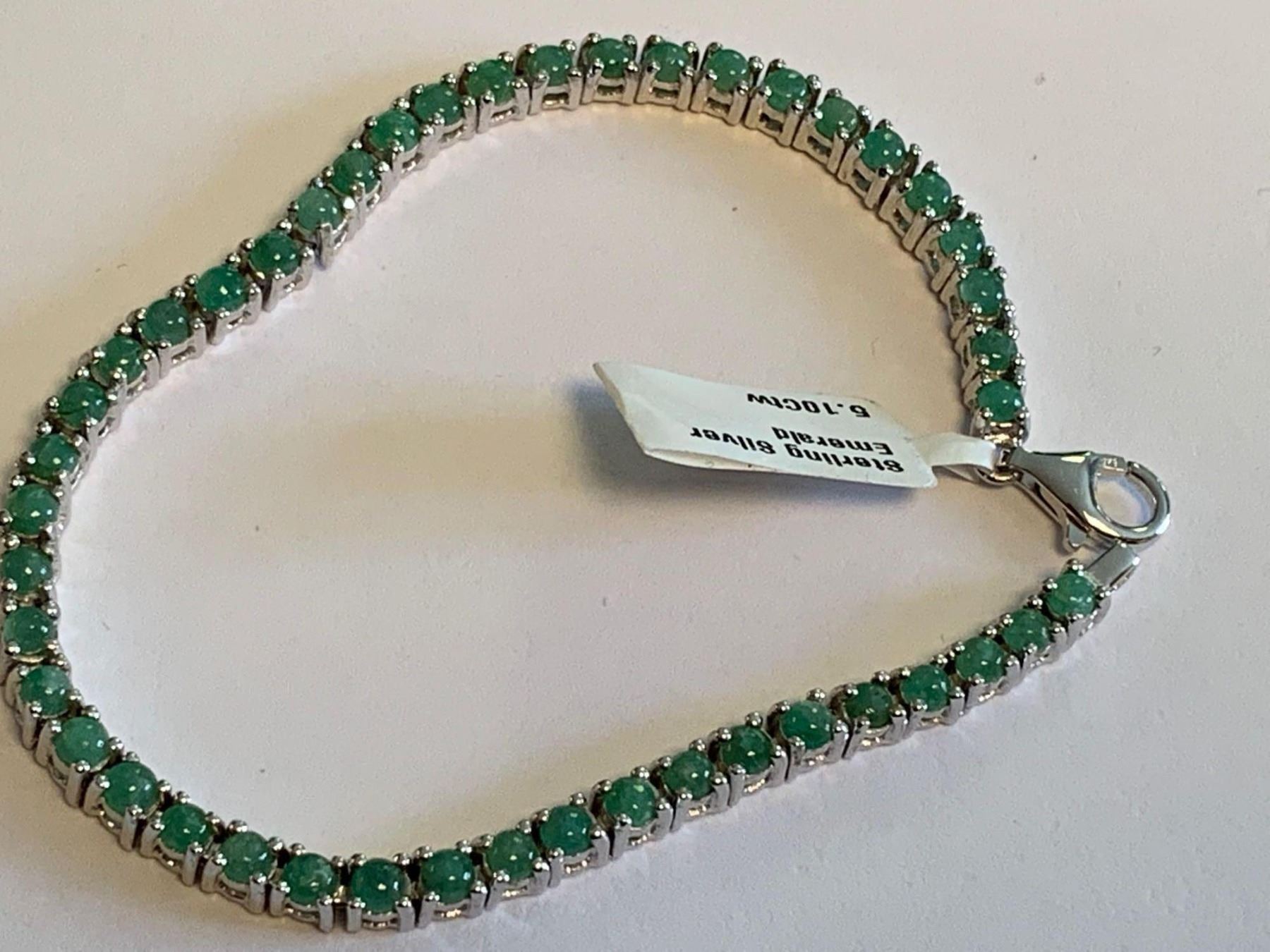 Ladies Silver .925 Emerald 5.10 Carat Tennis Bracelet with appraisal $1396.00