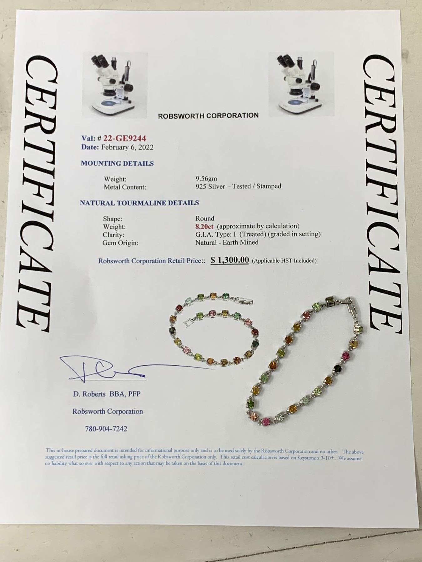 Ladies Tennis Bracelet with 8.20 Carat Multi Color Tourmaline Gemstones with certificate value $1300.00
