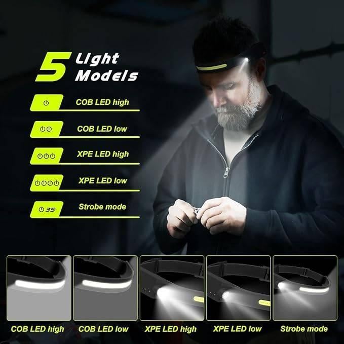 Lanlelin Headlamp Rechargeable, Super Bright 350 Lumen with 5 Light Mode 1200mAh Headlamp, 230°WideBeam Lampe Frontale, 0.14lb Lightweight IPX4 Waterproof Headlight