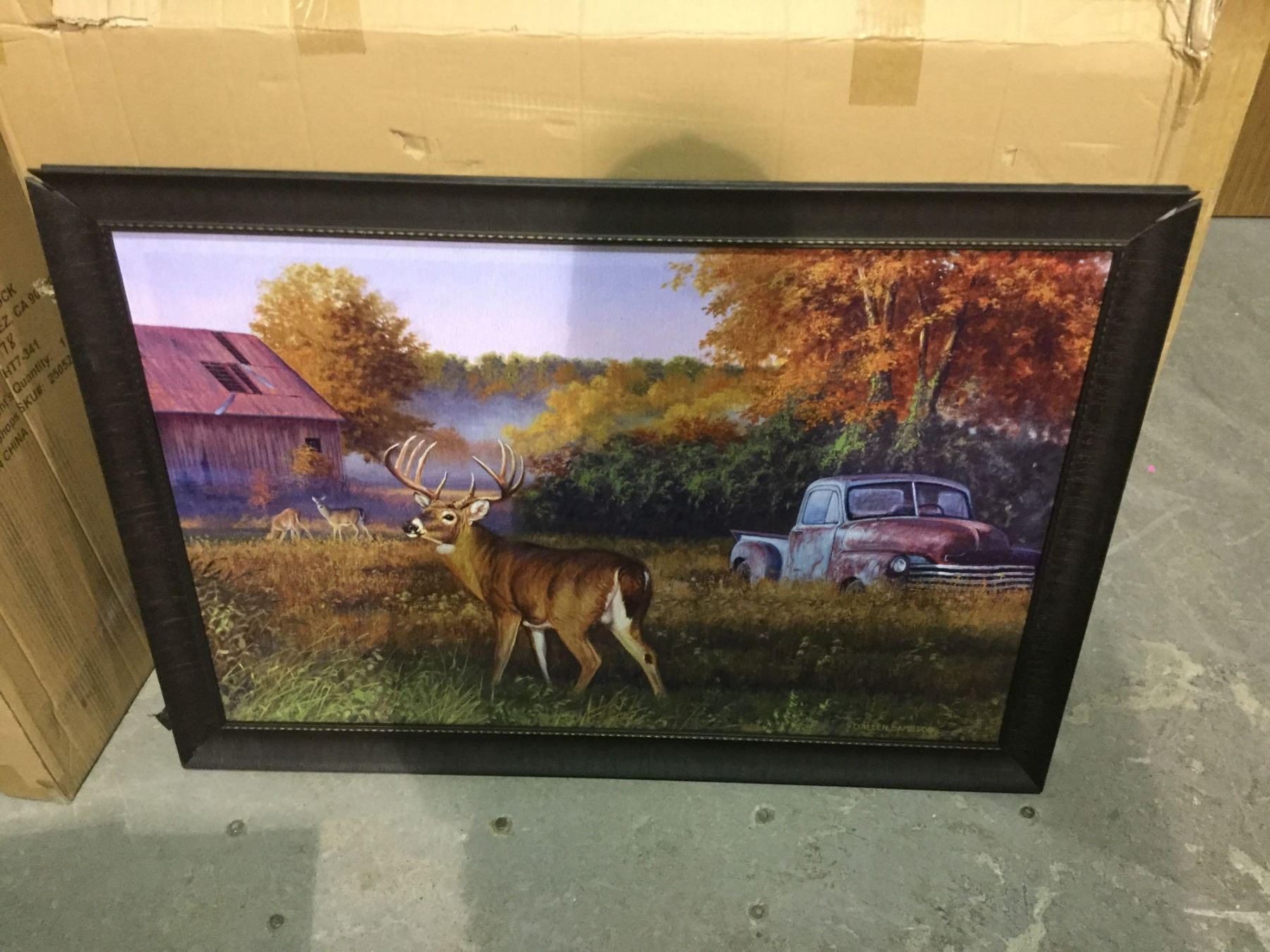 Large Framed Buck and Truck Canvas Print (approx3ft x 2ft)