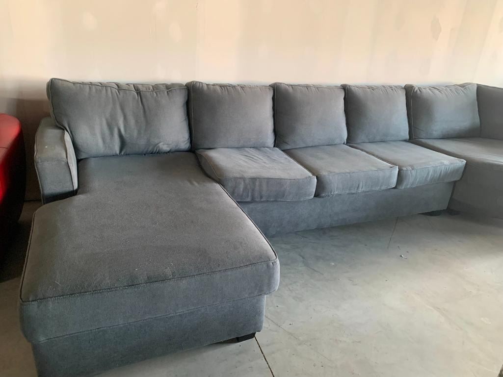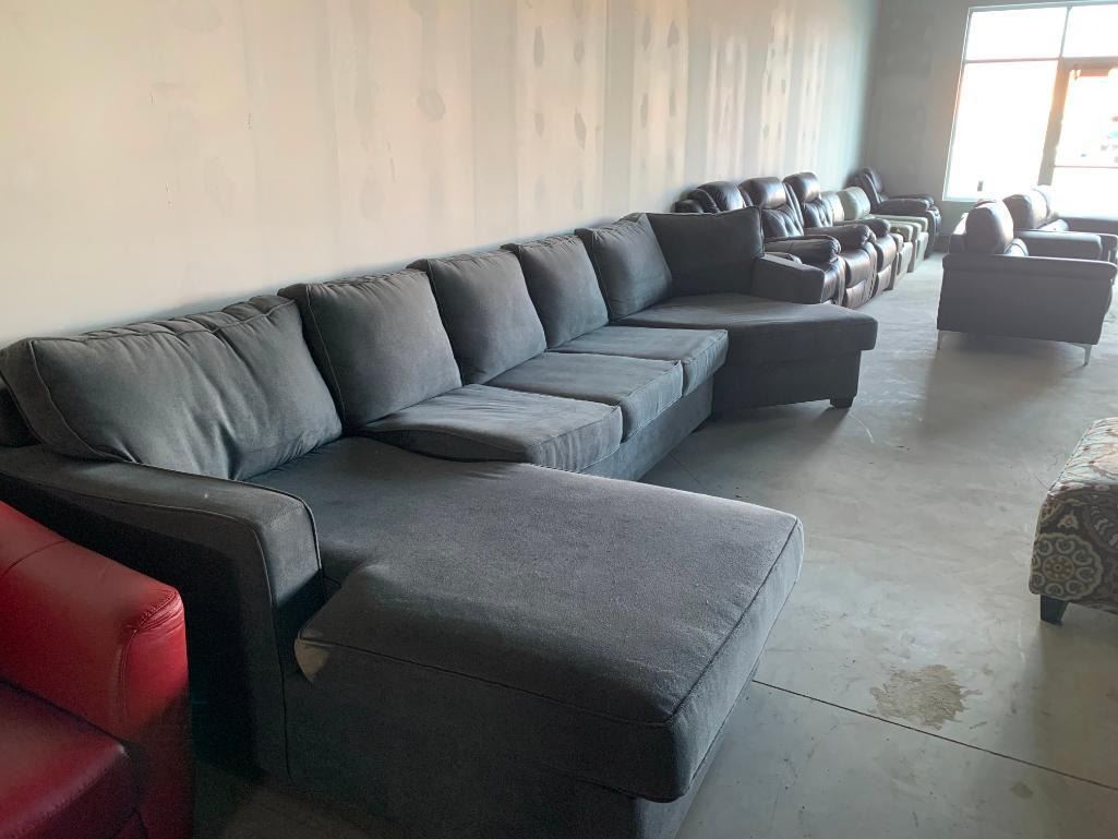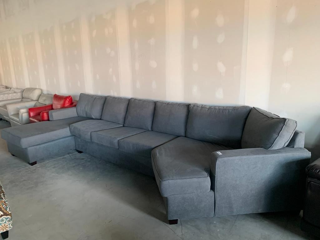 Large Grey Upholstered Modular Sectional Sofa Suite with chaise lounger and neo angle end