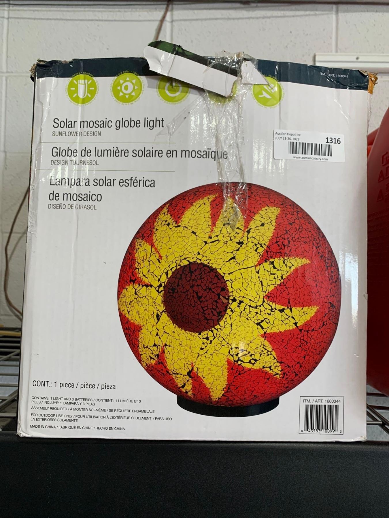 Large Solar Mosaic Globe Light, Sunflower Design