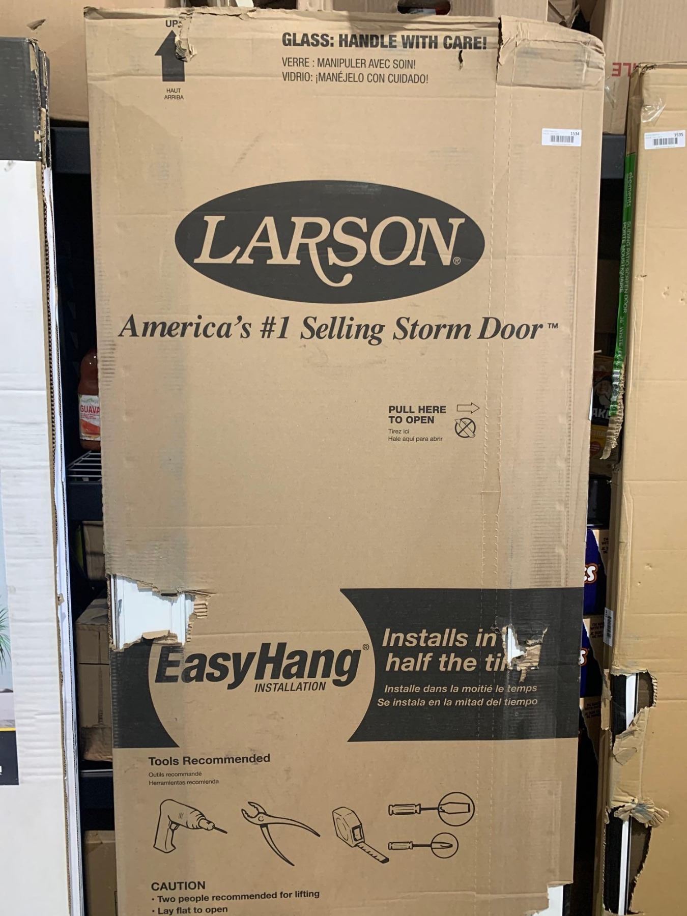 Larson Savannah Mid View White 32 inch Aluminum Screen Door damage on box as pictured