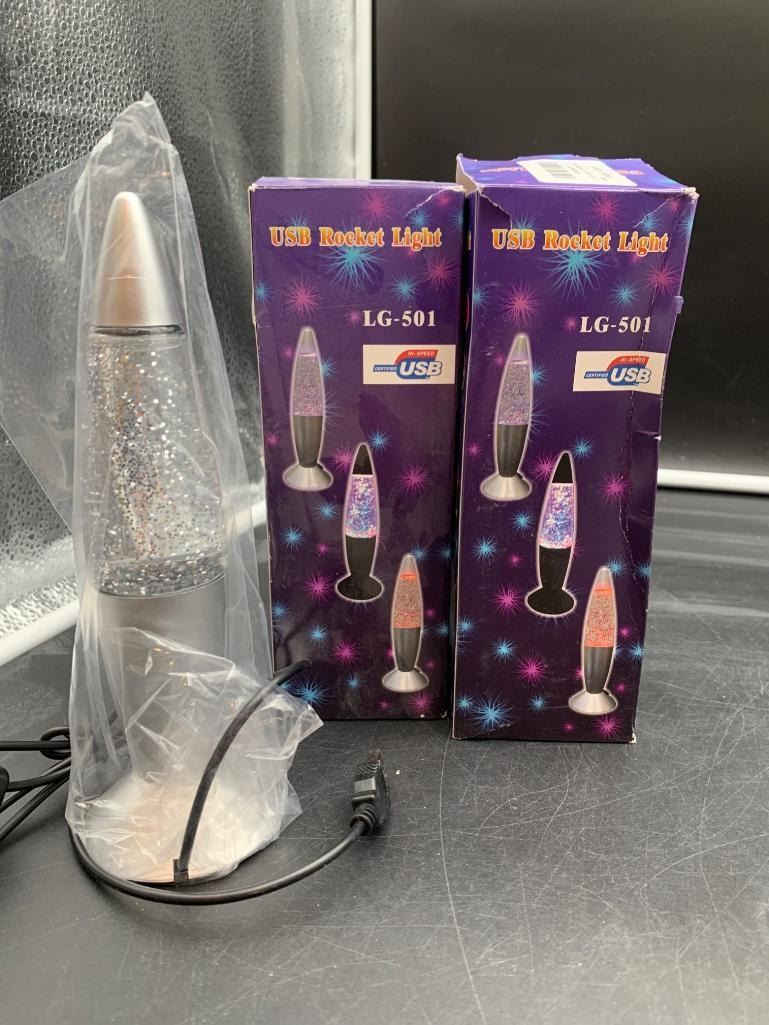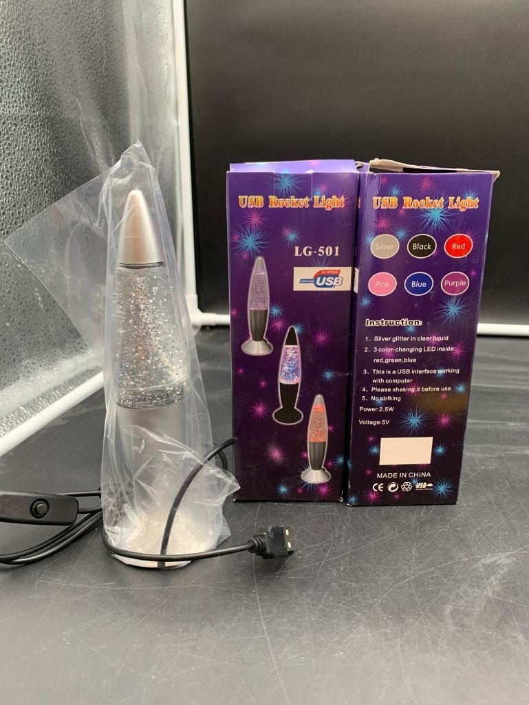 Lava Glitter Lamp with USB Plug Multi Color Changing LED Rocket Night Light