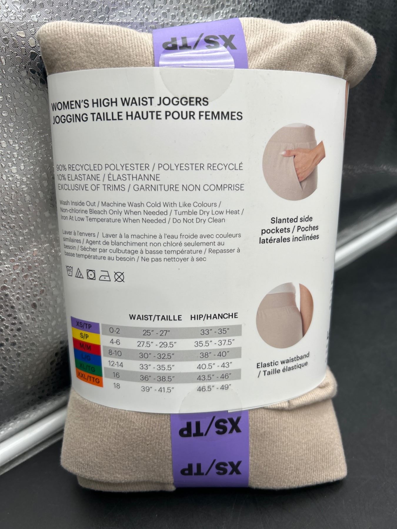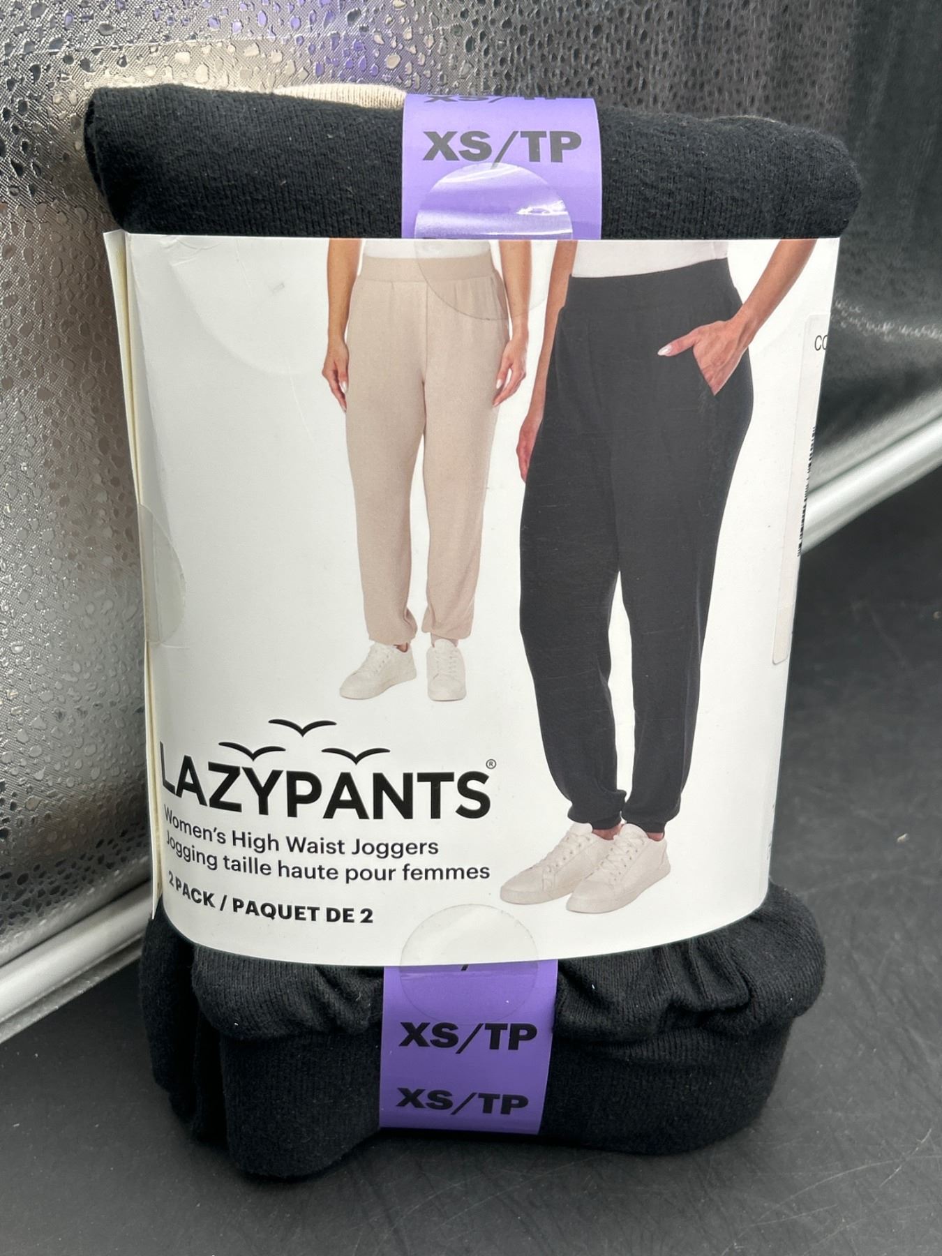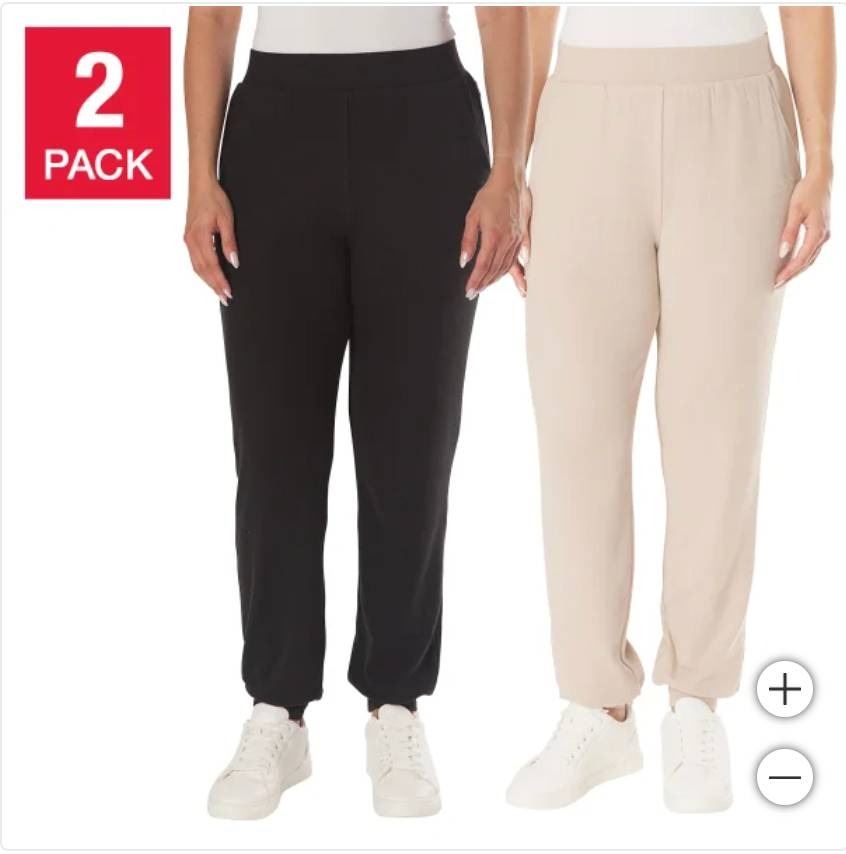 Lazypants Women’s High Waist Joggers, Size XS, 2-Pack, Black and Beige