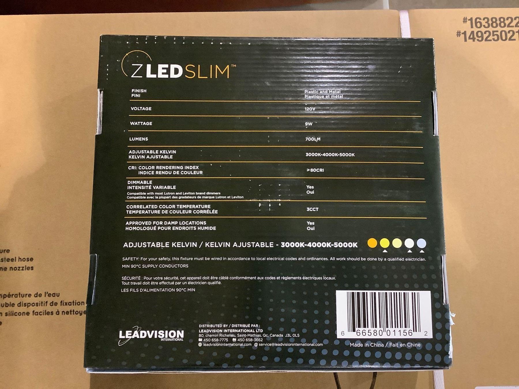 Leadvision 4-Pack ZLED Slim Dimmable Adjustable Kelvin 4in Slim Recessed Light with Remote Junction Box 9W/60W 120V 3000K-4000K-5000K