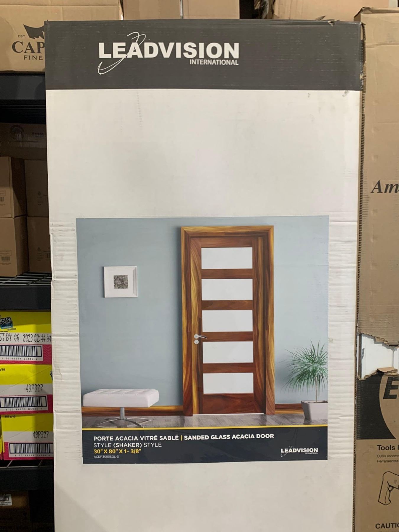 Leadvision Sanded Glass Acacia 5 lite shaker style door 30" x 80" x 1-3/8" in box