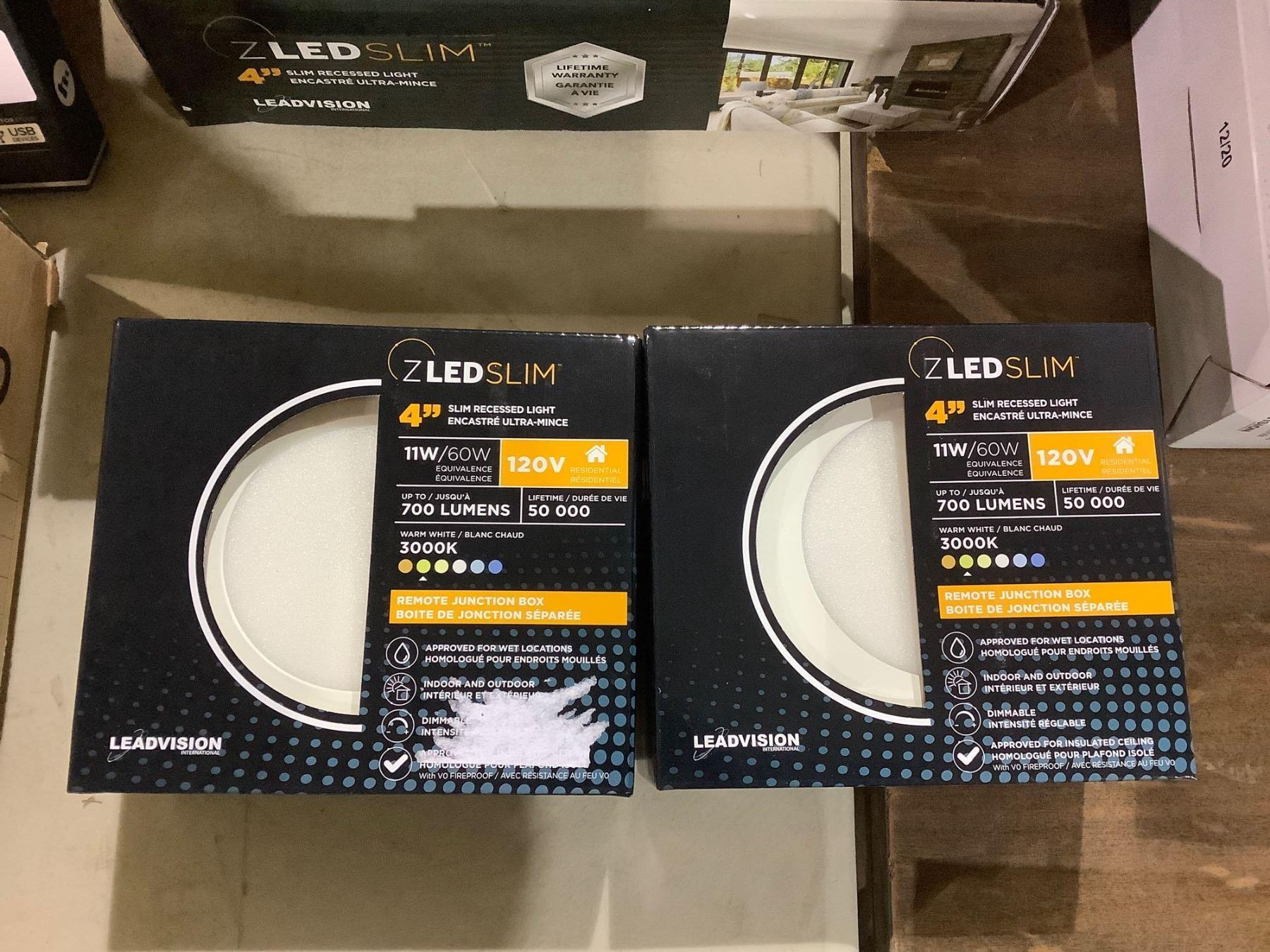 Leadvision ZLED Slim Dimmable Adjustable Kelvin 4in Slim Recessed Light with Remote Junction Box 11W/60W 120V 3000K Lot of 2