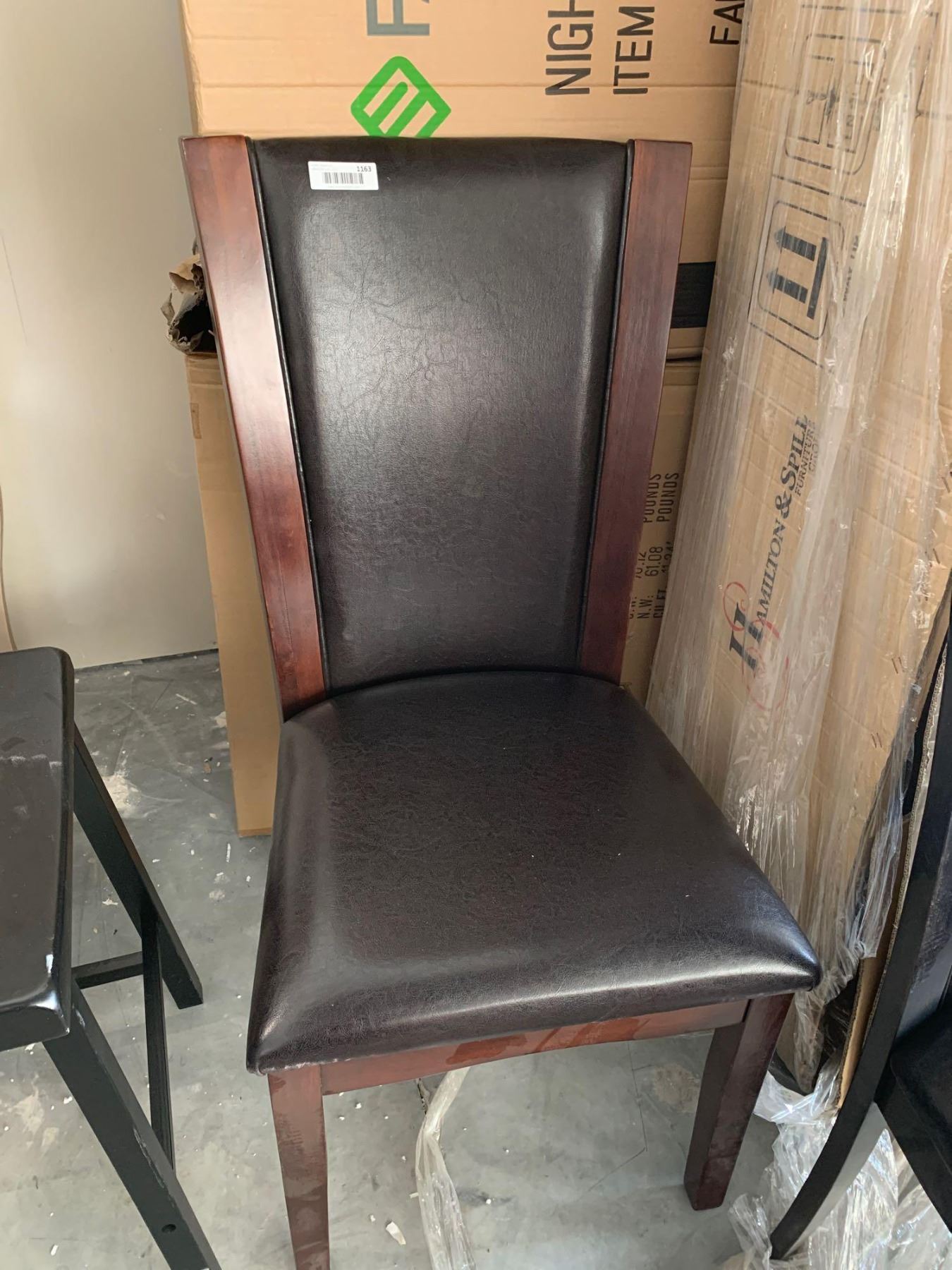 Leather Dining Room Chair with red wood trim FLOOR DISPLAY MODEL- pick up Dec. 30 from 9-3, off site location 4231-109 AVE NE
