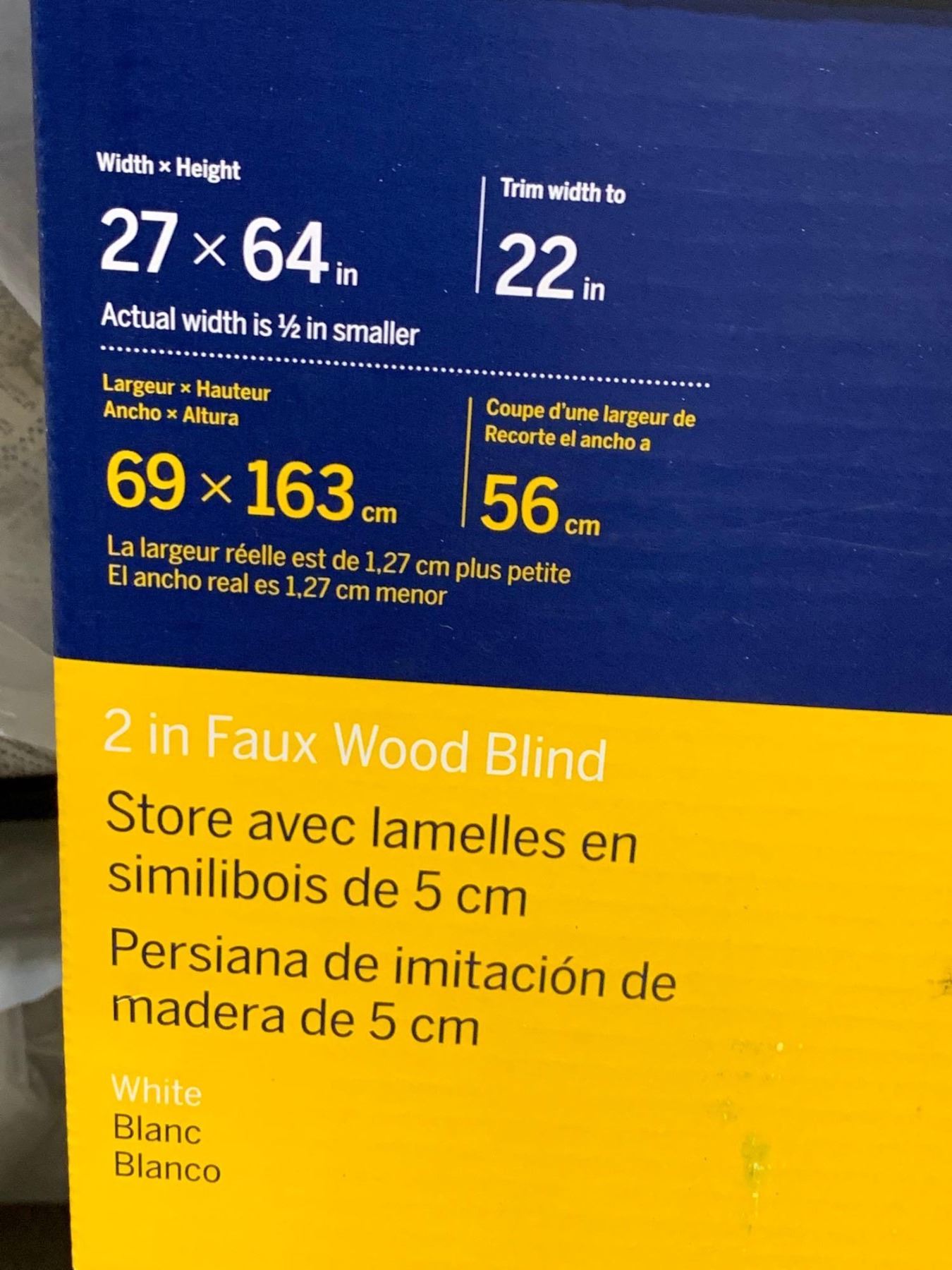 Levolor Trim+Go 2" Faux Wood White Blind 27"w x 64"h
