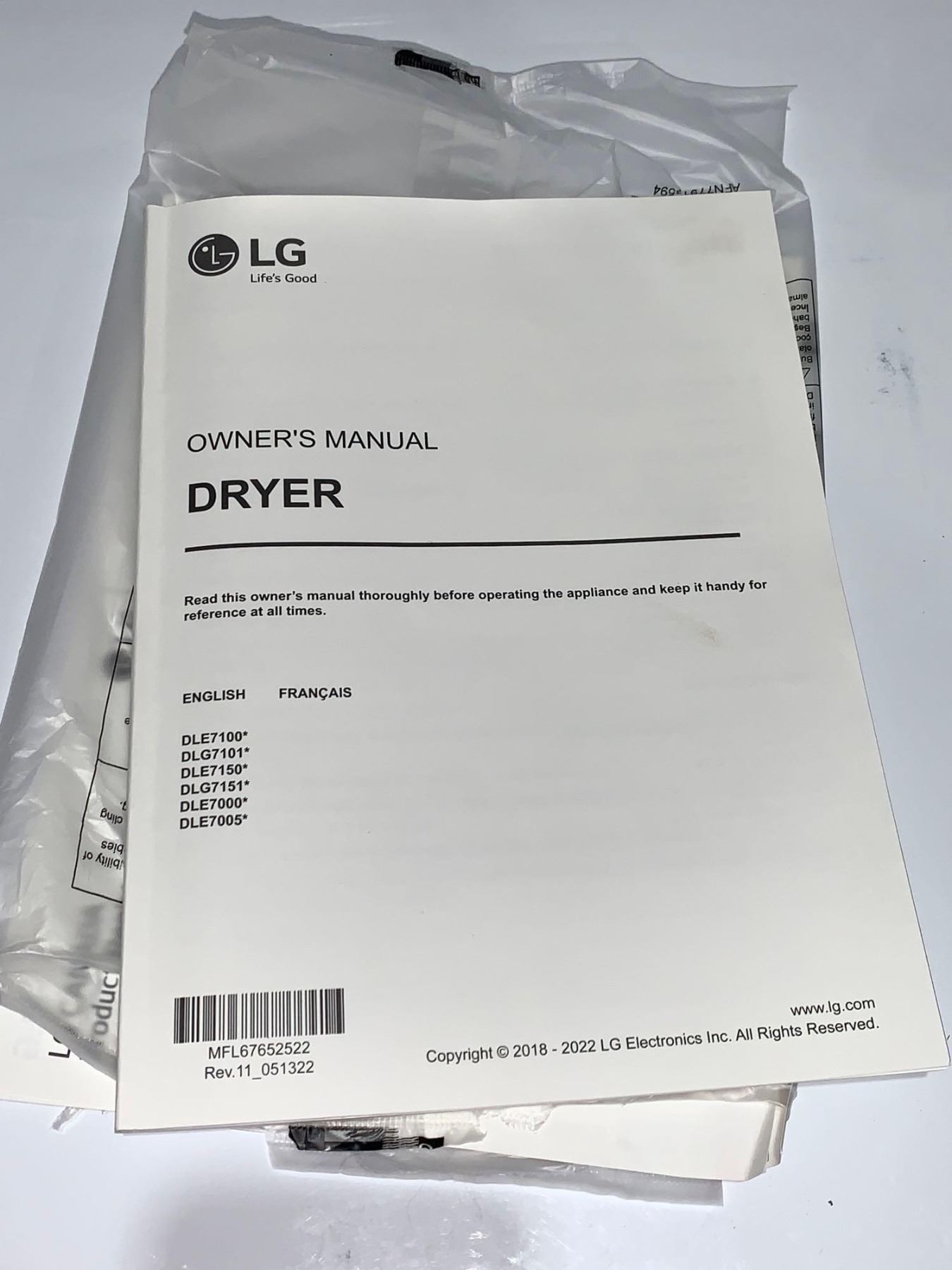 Lg Front Load Heavy Duty Large Capasity Clothing Dryer
