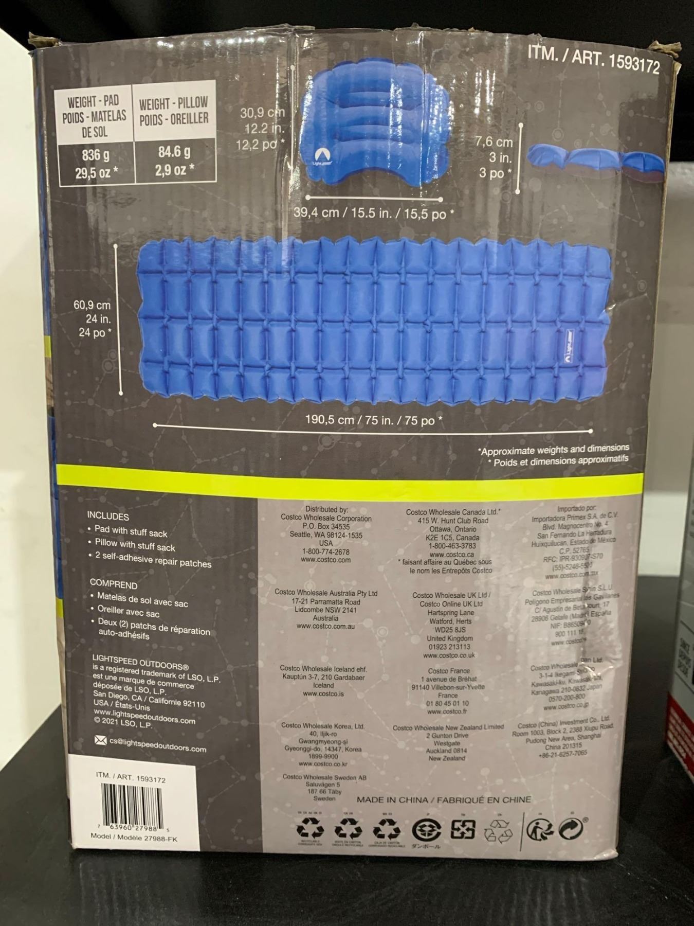 Light Speed Restaire Lite Insulated Sleeping Pad + Pillow with 2 Way Inflate/Deflate Valve