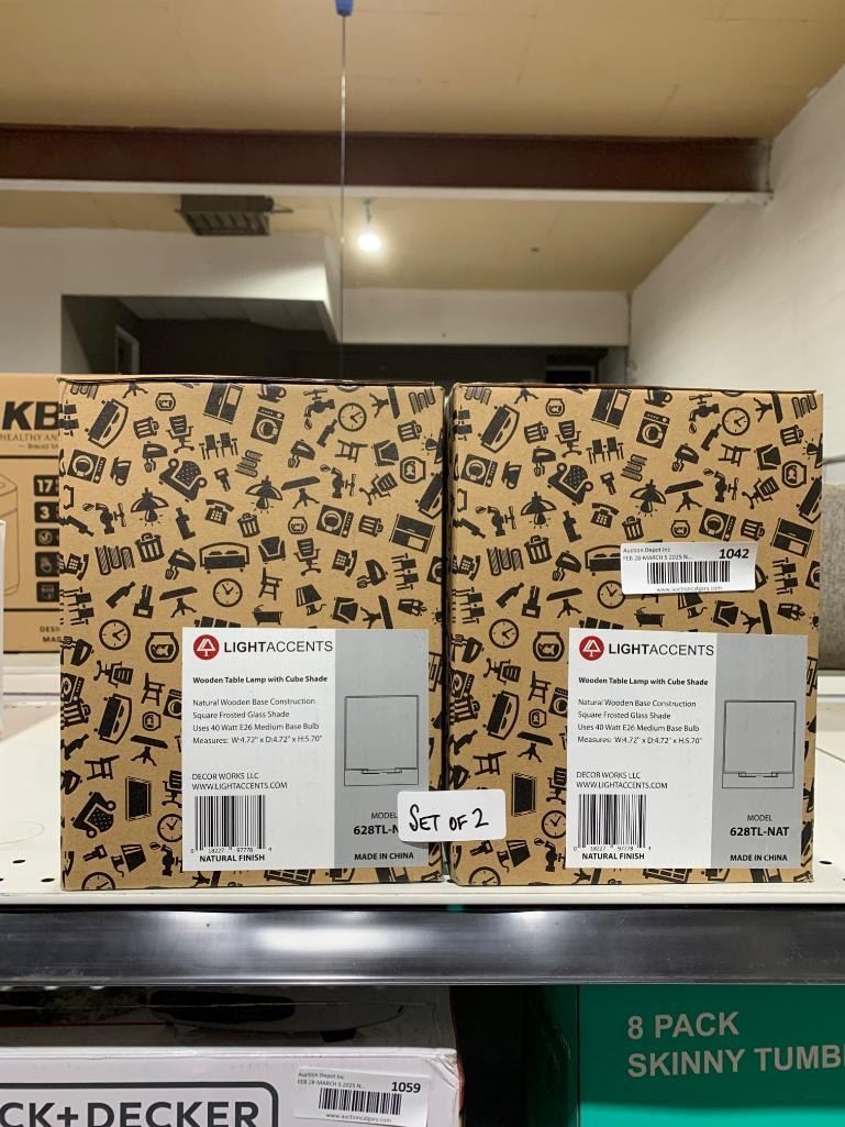 LightAccents Wooden Table Lamp, Model 628TL-NAT, Set of 2