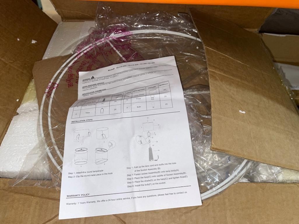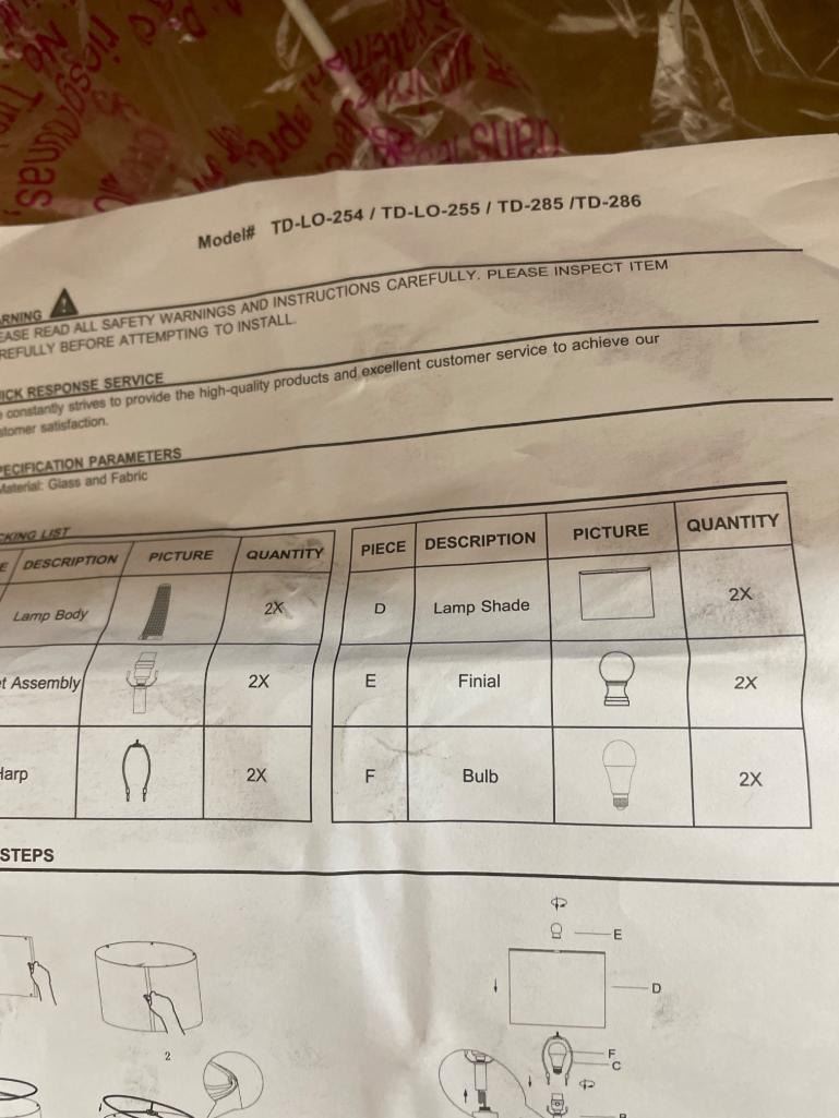 Lighting Assembly Model TD-LO-254/TD-LO-255/TD-285/TD-286 Components
