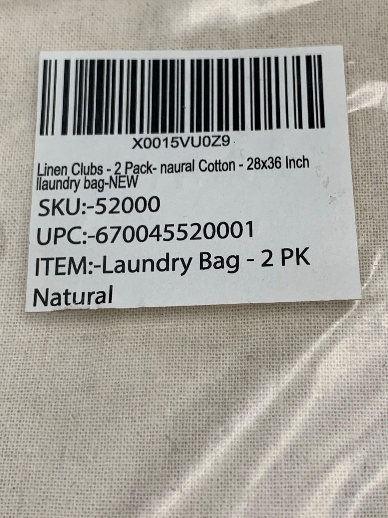 Linen Clubs 2pk, Natural Cotton (28 x 36in) Laundry Bag